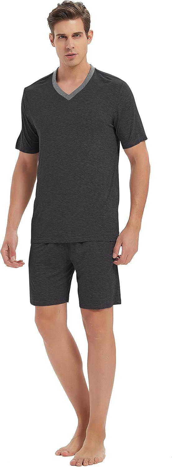 MoFiz Mens Pajamas Set Short Sleeve PJ’s Sleep Lounge Sleepwear Cool Pyjama Summer Sets Comfortable Lightweight(6-dark Grey)
