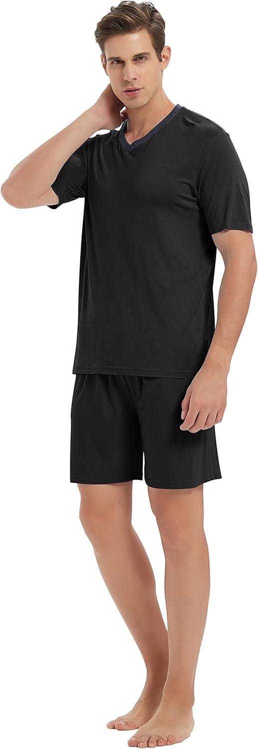 MoFiz Mens Pajamas Set Short Sleeve PJ’s Sleep Lounge Sleepwear Cool Pyjama Summer Sets Comfortable Lightweight(Black)
