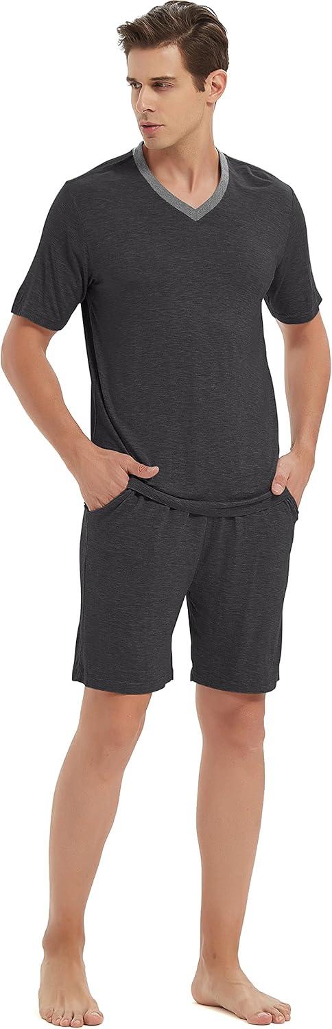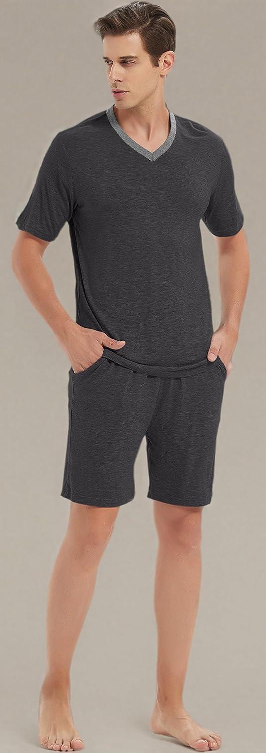 MoFiz Mens Pajamas Set Short Sleeve PJ’s Sleep Lounge Sleepwear Cool Pyjama Summer Sets Comfortable Lightweight(Deep Gray)
