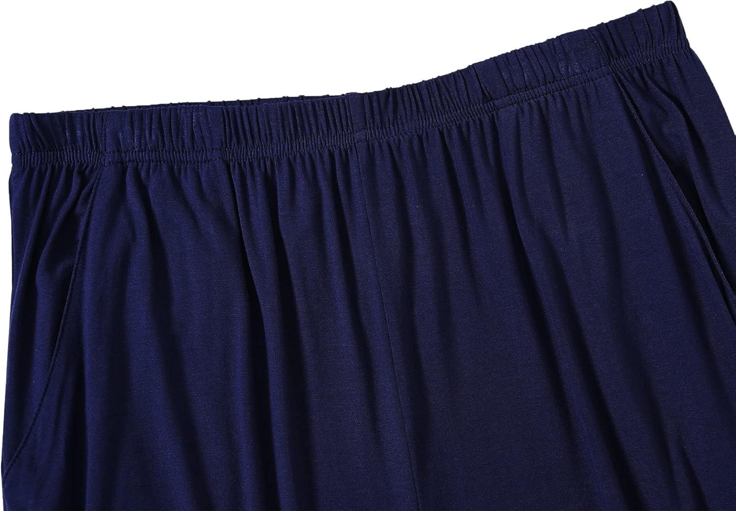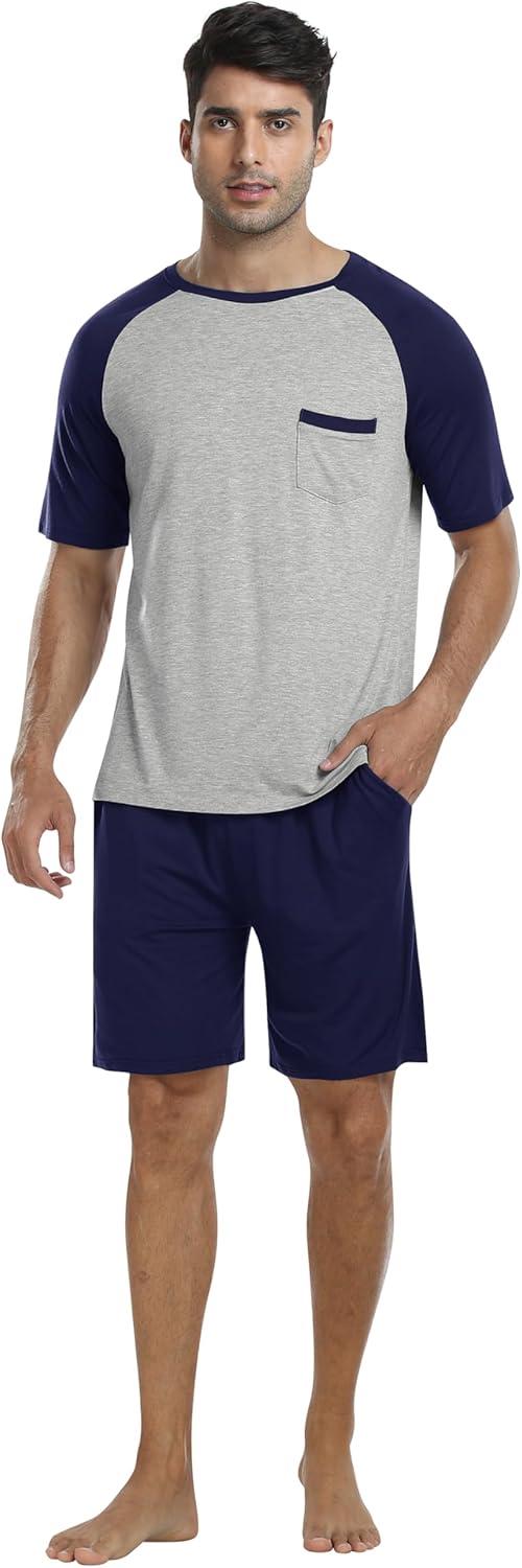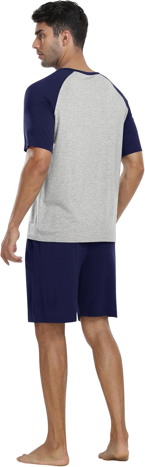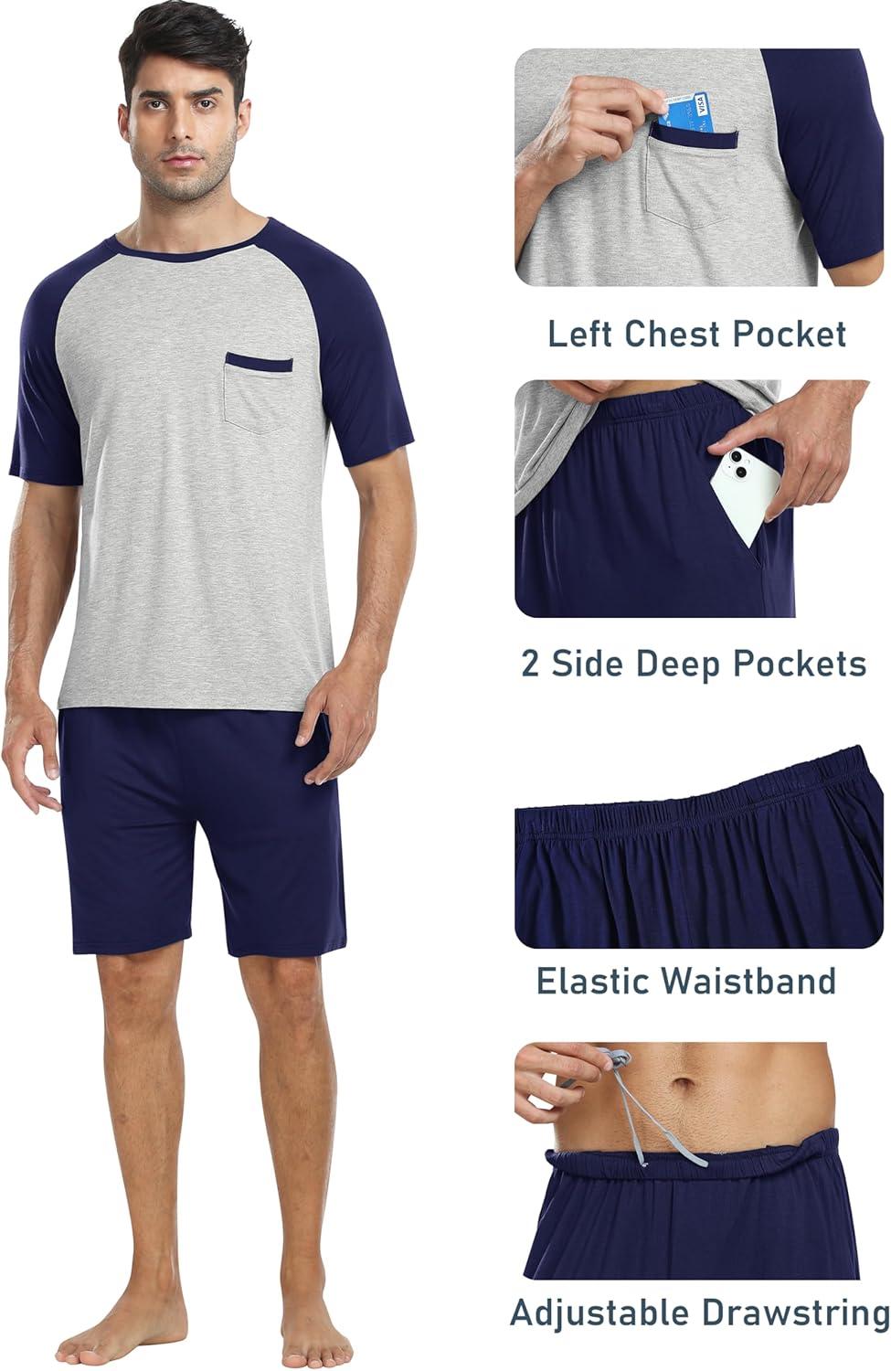 MoFiz Mens Pajamas Set Sleepwear Sleep Shirt and Shorts Pajama Set Lightweight Soft Mens Pjs Lounge Set with Pockets(Navy Blue)