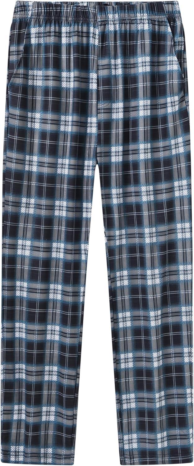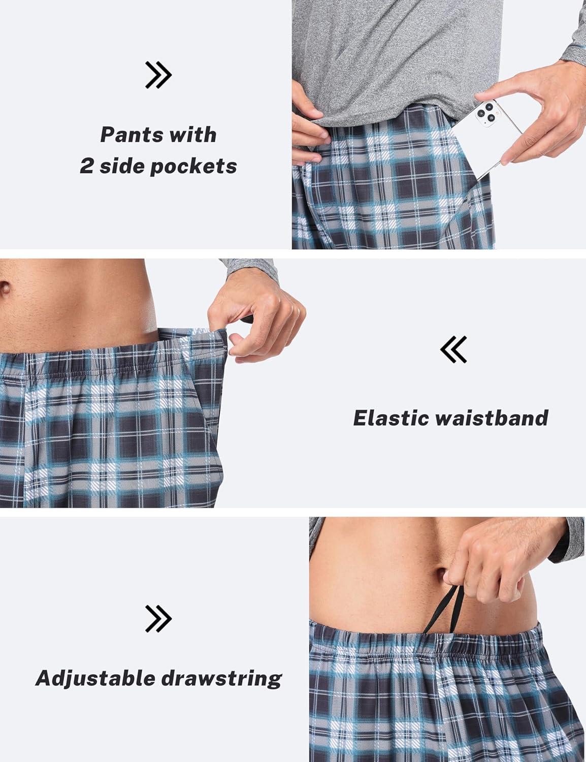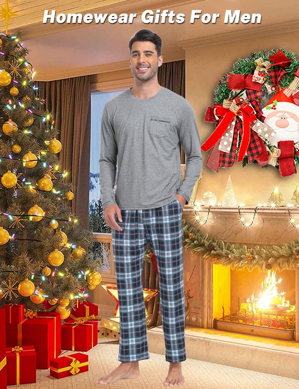 MoFiz Men’s Plaid Pajama Set Long Sleeve, Soft 2-Piece Sleepwear with Pockets | Cozy PJs & Loungewear for Holiday, Christmas(56-blue Plaid)
