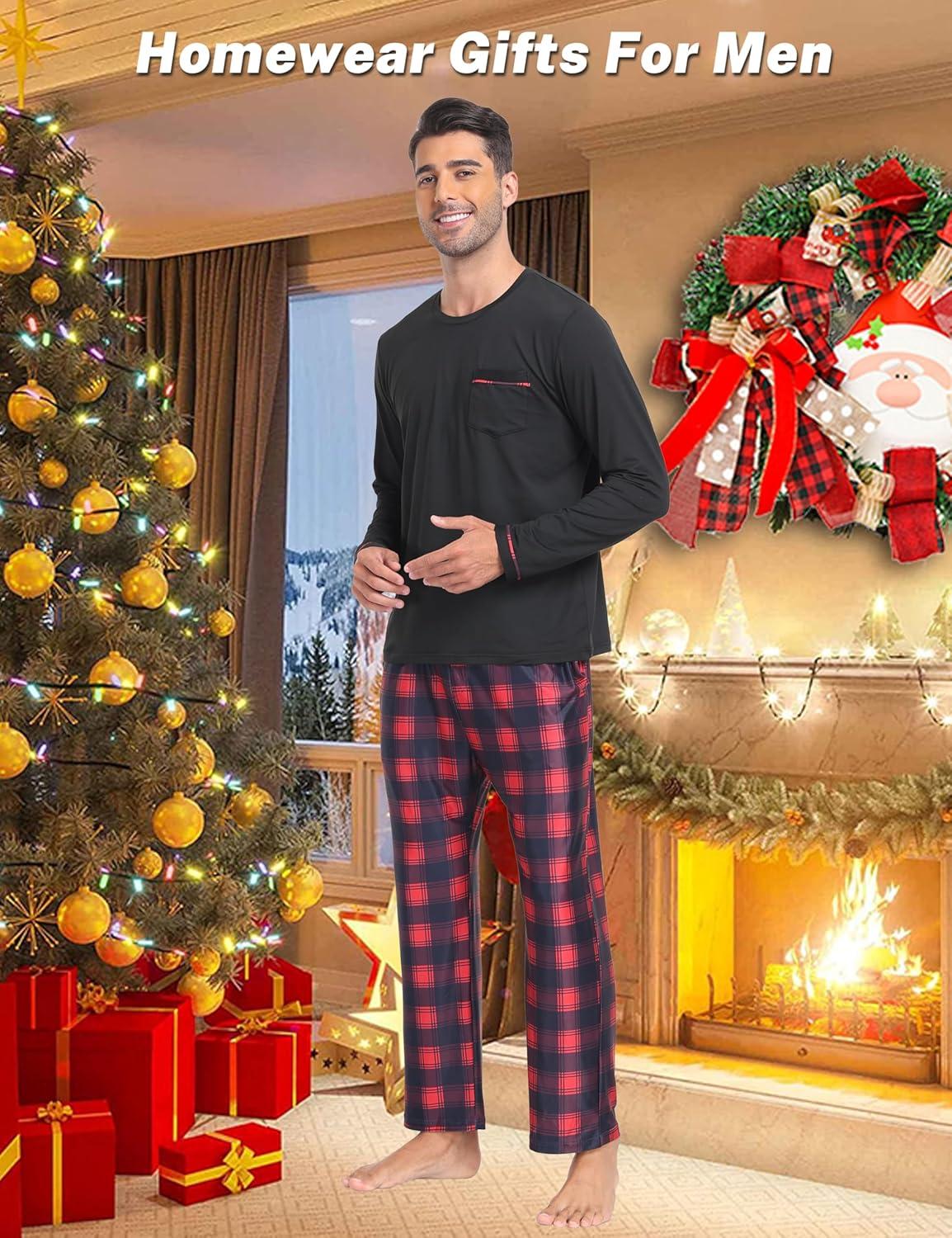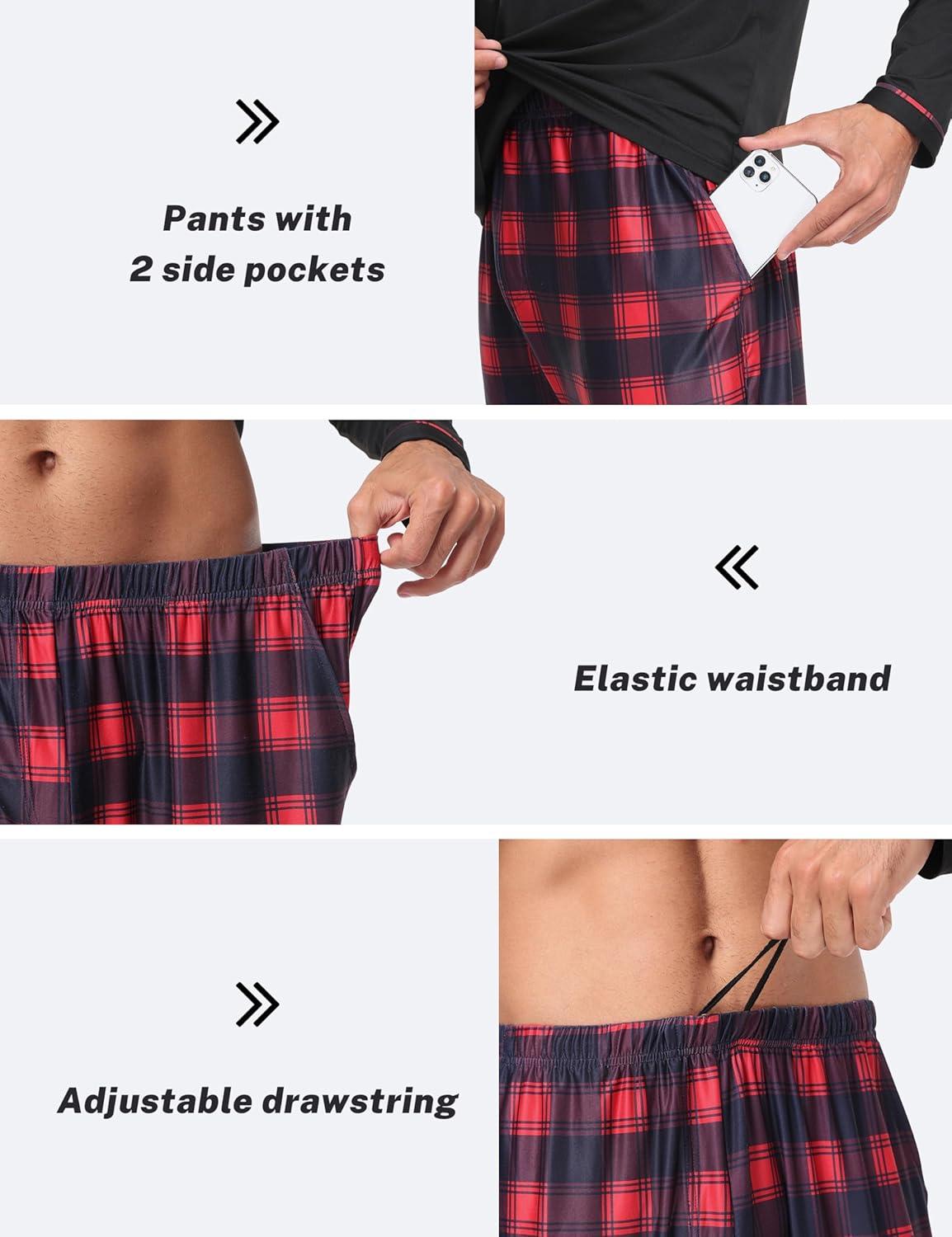 MoFiz Men’s Plaid Pajama Set Long Sleeve, Soft 2-Piece Sleepwear with Pockets | Cozy PJs & Loungewear for Holiday, Christmas(58-red Plaid)