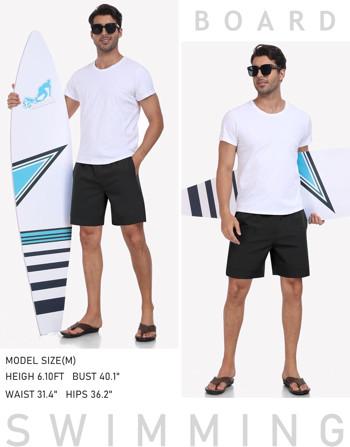 MoFiz Mens Swim Trunks 7 Inch Swim Shorts with Compression Liner Swimming Suits Board Shorts Surf Short Bathing Suit(Black)
