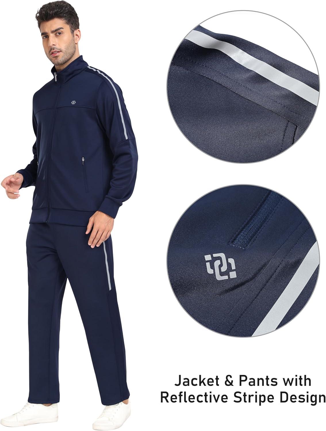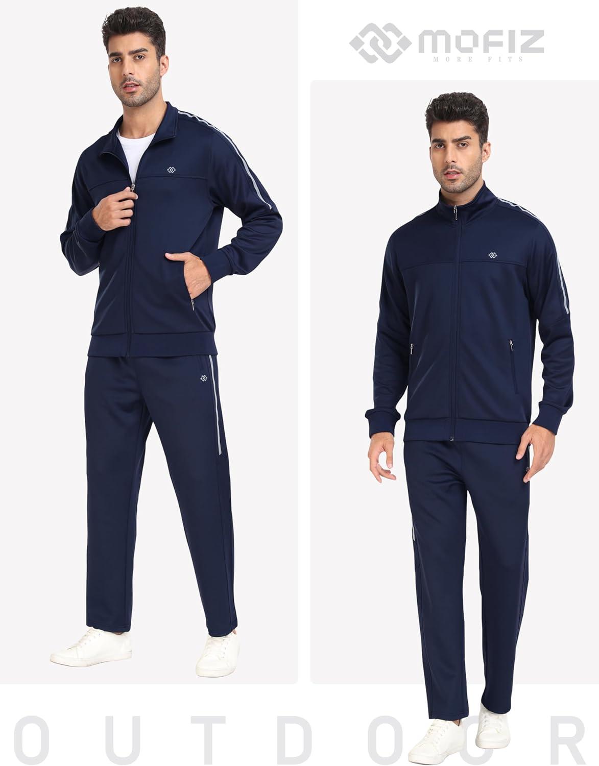 MoFiz Men’s Tracksuits Set Full Zip Running Sweatsuit For Men Long Sleeve Causal 2 Piece Outfits Jogging Suits Navy Blue L