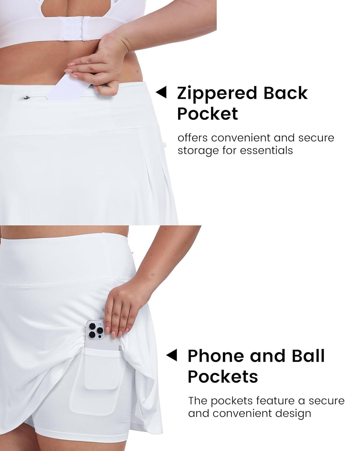 MoFiz Plus Size 20″ Knee Length Skorts Skirts for Women Golf Tennis Skort High Waisted Athletic Skirt for Summer Casual(White)