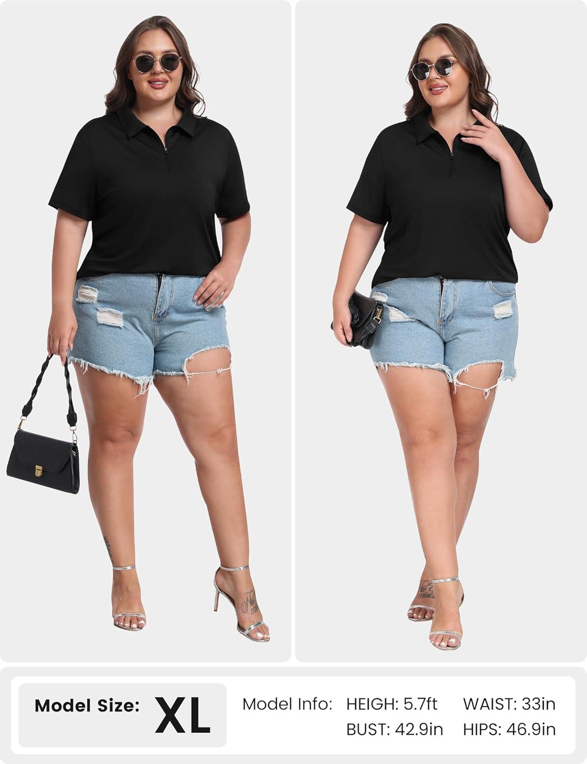 MoFiz Plus Size Golf Polo Shirts for Women Zip Up Short Sleeve Collared Tennis Workout Tops Sport Athletic Activewear XL-5XL(Black)
