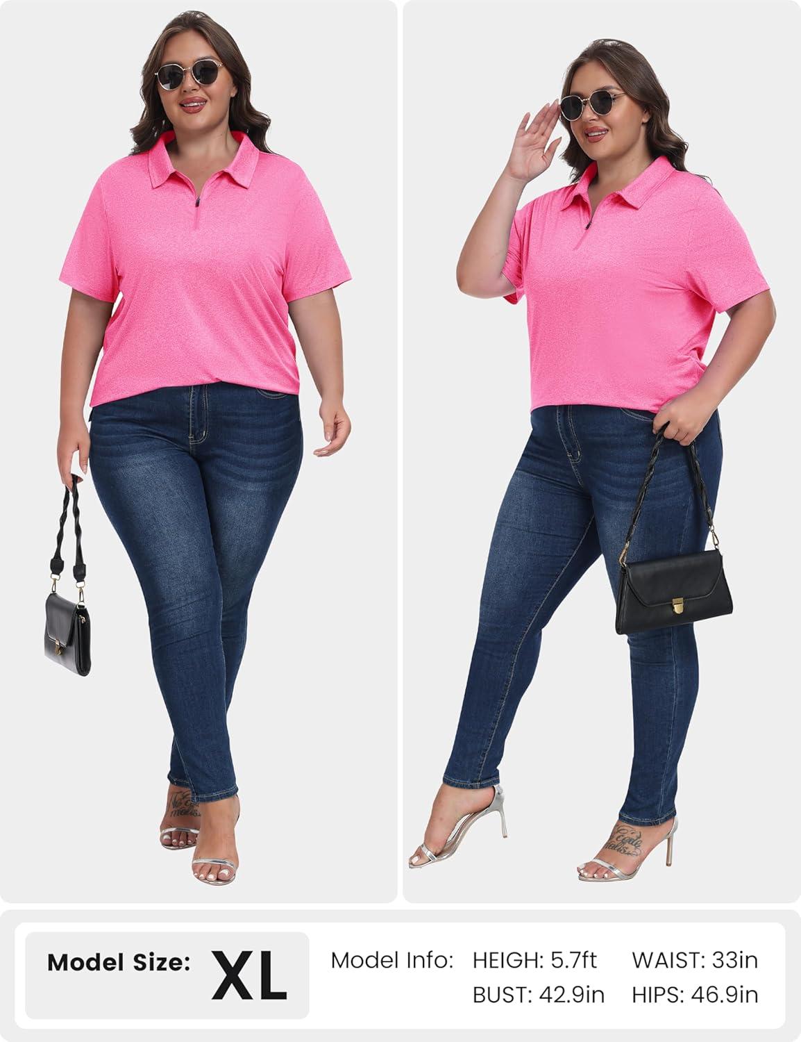 MoFiz Plus Size Golf Polo Shirts for Women Zip Up Short Sleeve Collared Tennis Workout Tops Sport Athletic Activewear XL-5XL(Rose Red)