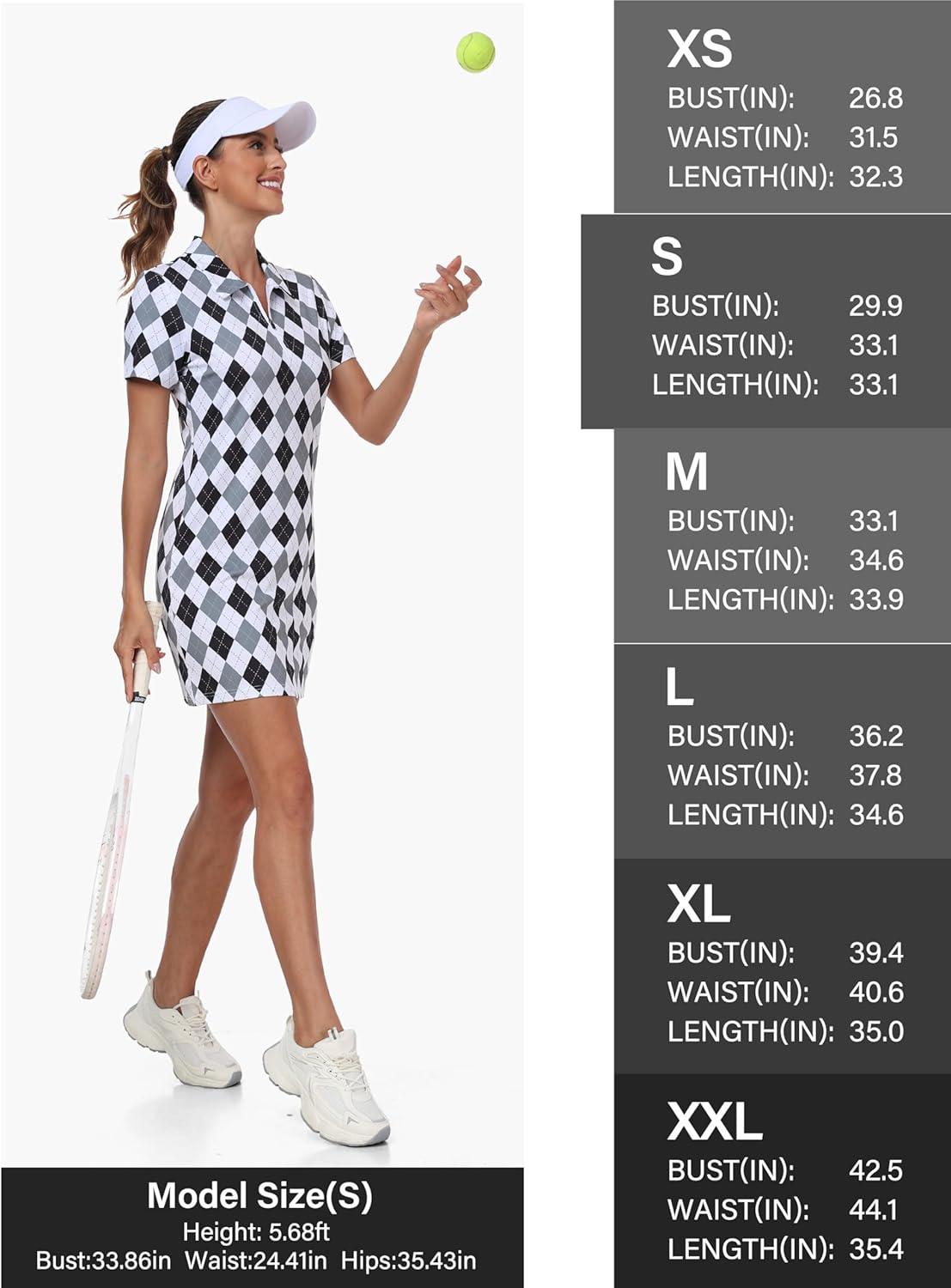MoFiz Short Sleeve Polo Dresses with Zipper for Women Comfy Stretchy Tennis Dress Sport Casual Wear Golf Outfits(2025-black Plaid)