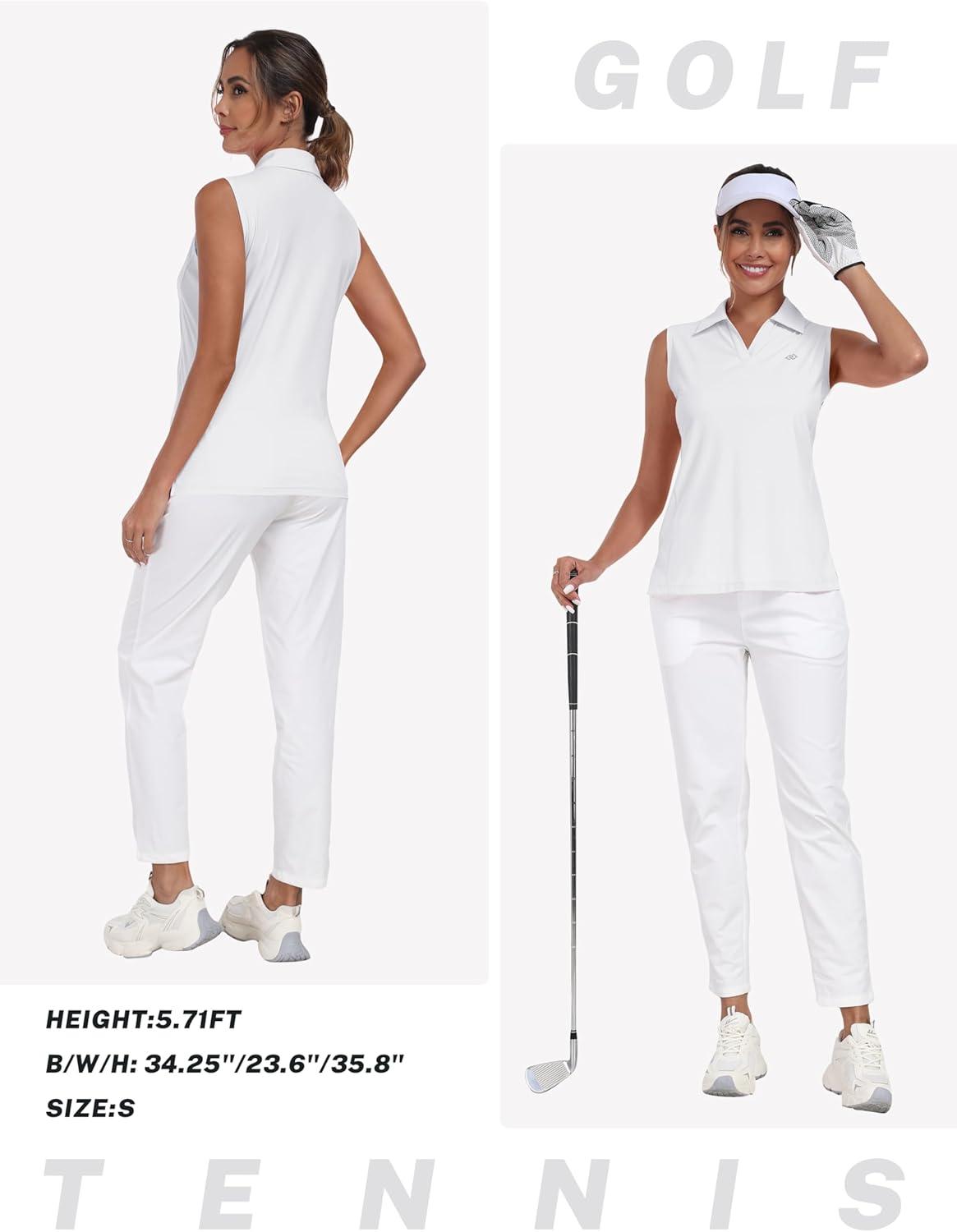 MoFiz Women Racerback Sleeveless Golf Polo Shirt V-Neck Collarless Tennis Running Tank Tops Quick Dry Athletic Casual(2025-white)