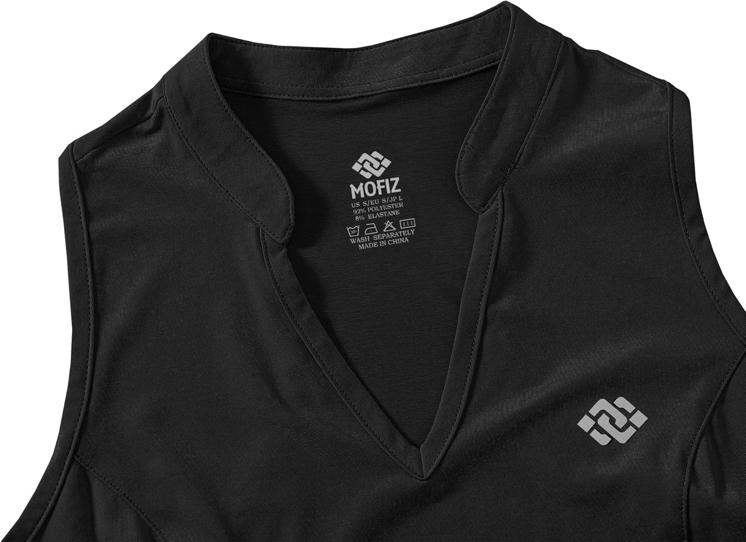 MoFiz Women Racerback Sleeveless Golf Polo Shirt V-Neck Collarless Tennis Running Tank Tops Quick Dry Athletic Casual(A-black)