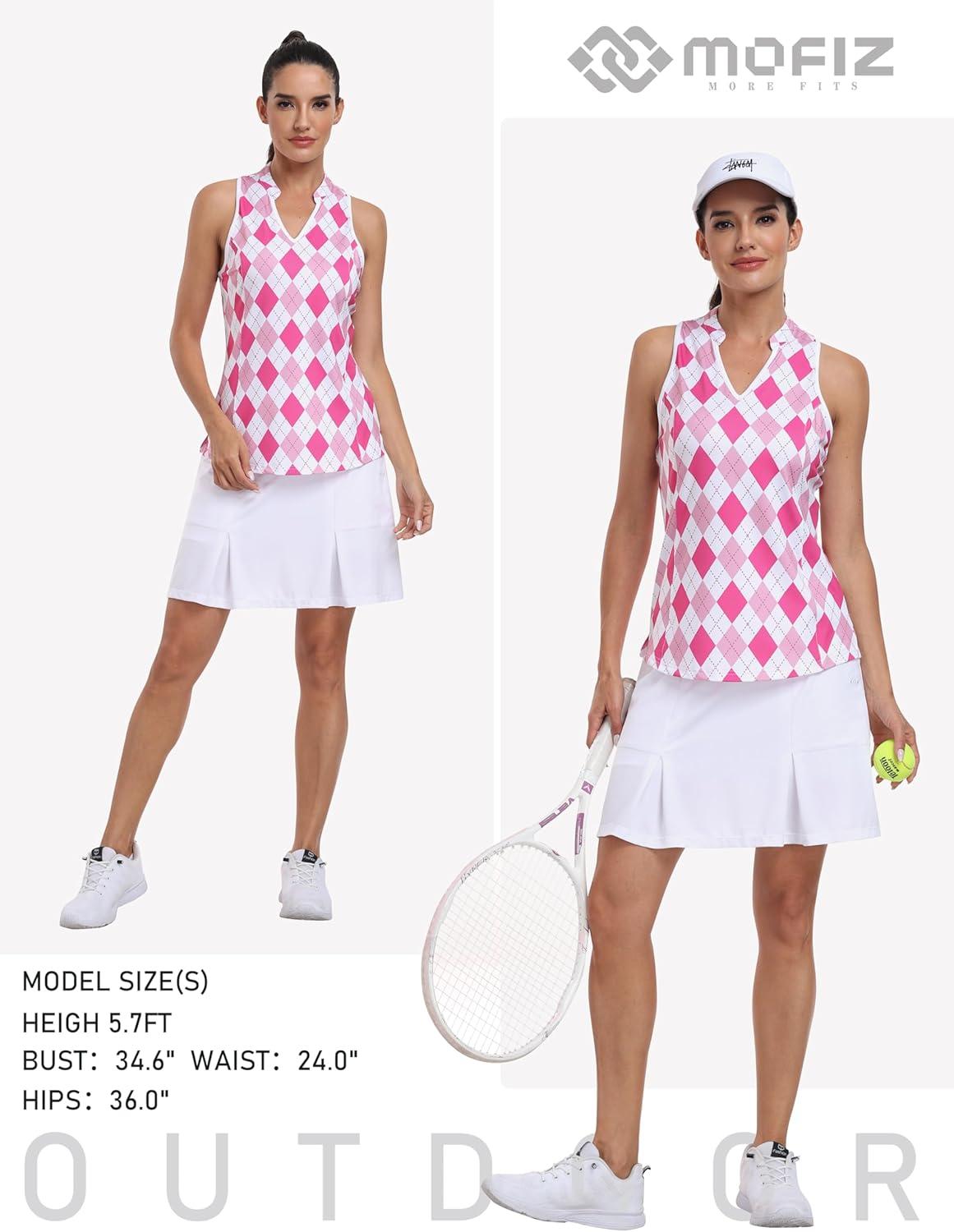 MoFiz Women Racerback Sleeveless Golf Polo Shirt V-Neck Collarless Tennis Running Tank Tops Quick Dry Athletic Casual(A-pink Plaid)