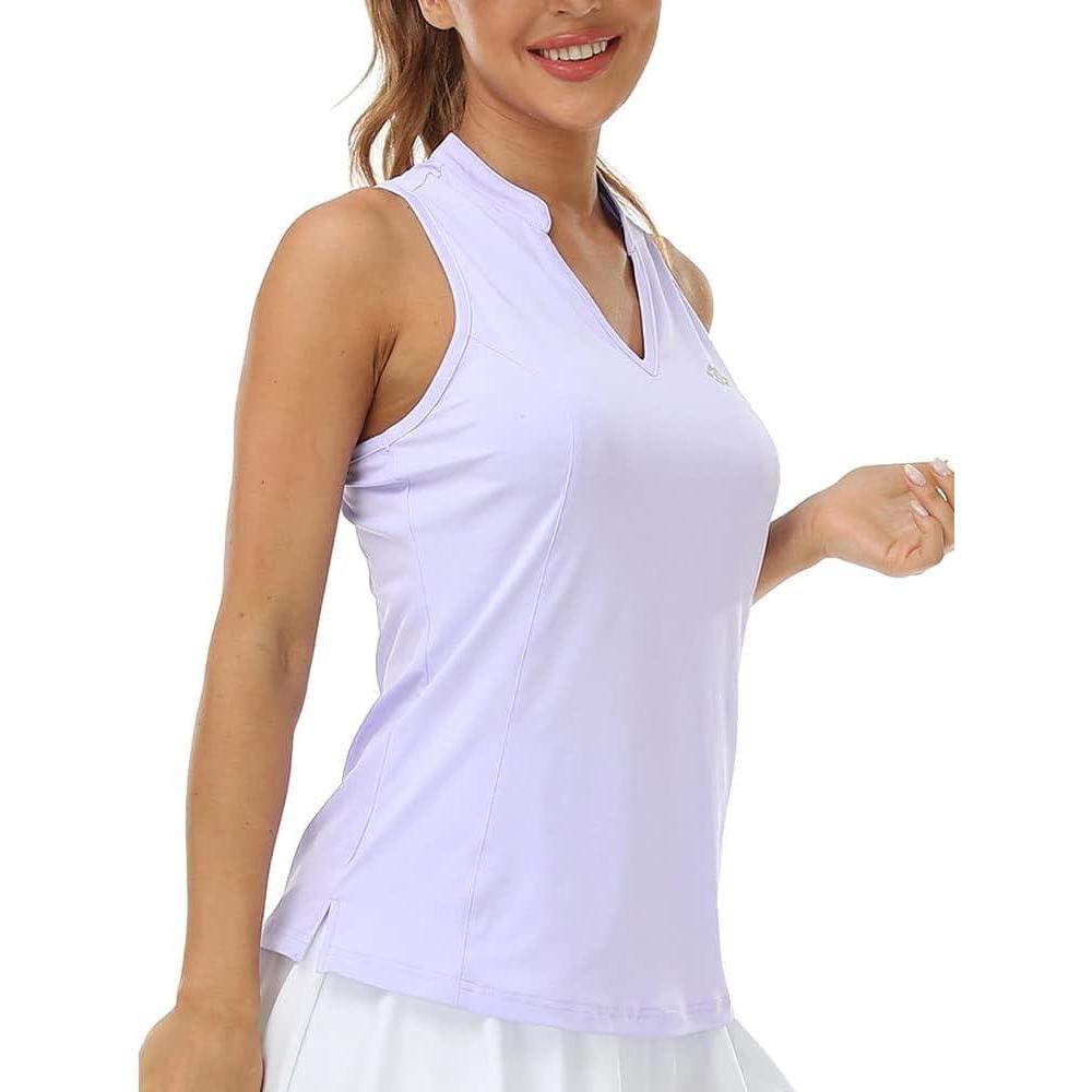 MoFiz Women Racerback Sleeveless Golf Polo Shirt V-Neck Collarless Tennis Running Tank Tops Quick Dry Athletic Casual(A-purle)