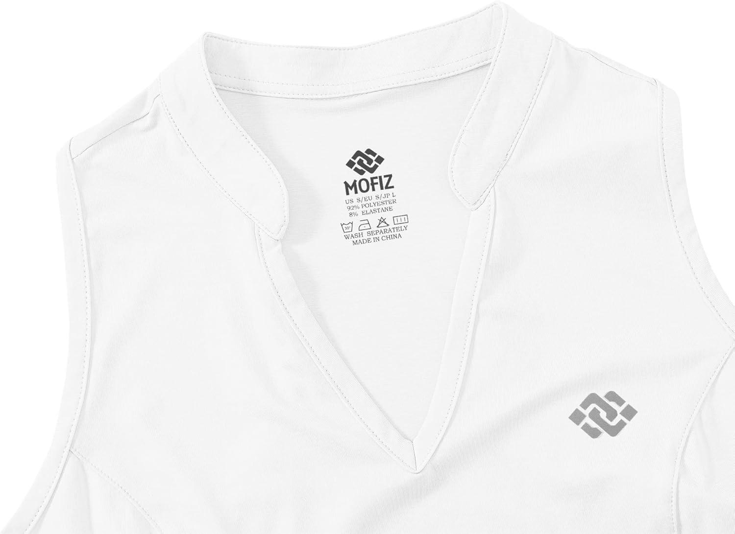 MoFiz Women Racerback Sleeveless Golf Polo Shirt V-Neck Collarless Tennis Running Tank Tops Quick Dry Athletic Casual(A-white)