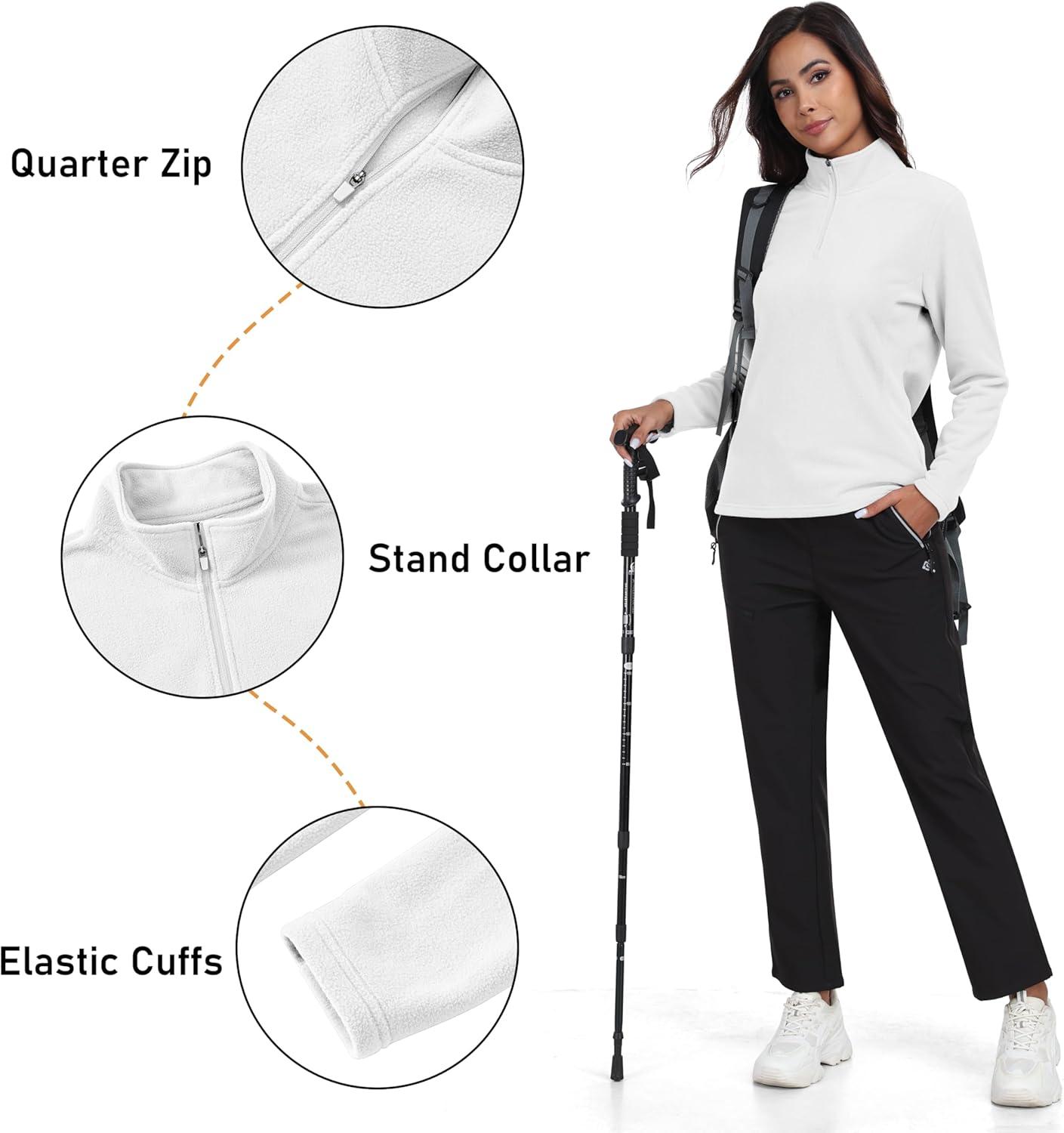 MoFiz Women’s 1/4 Zip Polar Fleece Pullover Long Sleeve Soft Lightweight Warm Winter Jacket Top(White)