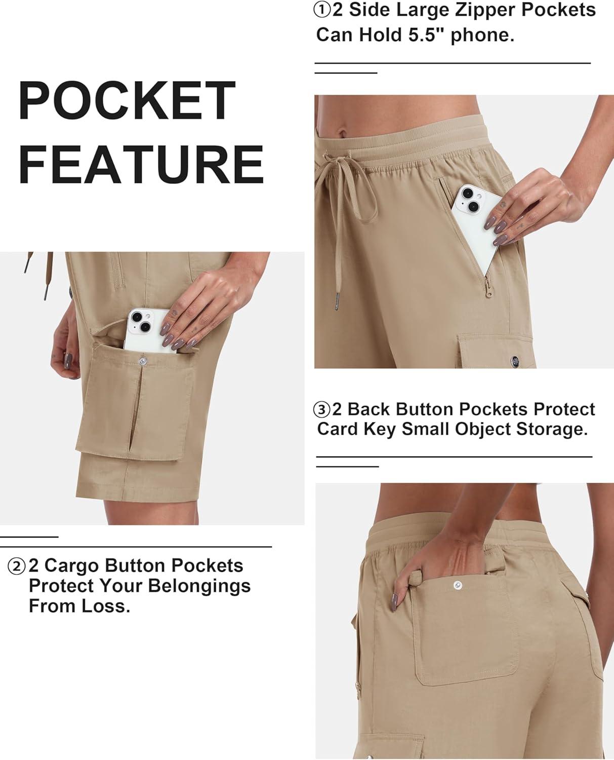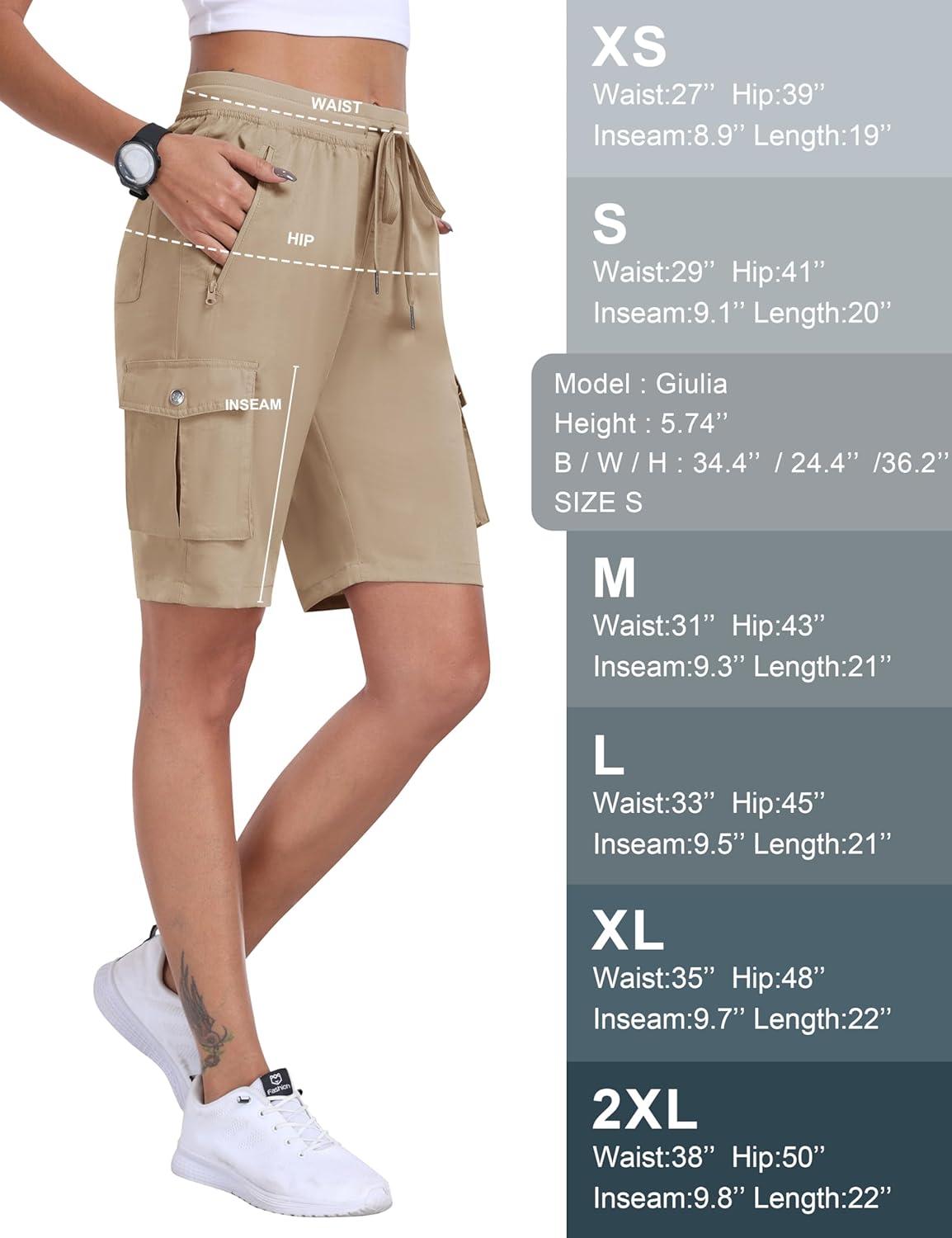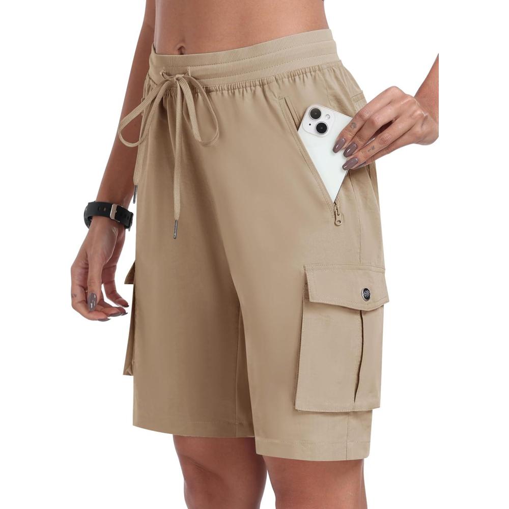 MoFiz Women’s 10″ Hiking Cargo Shorts Lightweight Quick Dry Outdoor Running Athletic Short Summer Travel Loose 6 Pockets(B03-khaki)