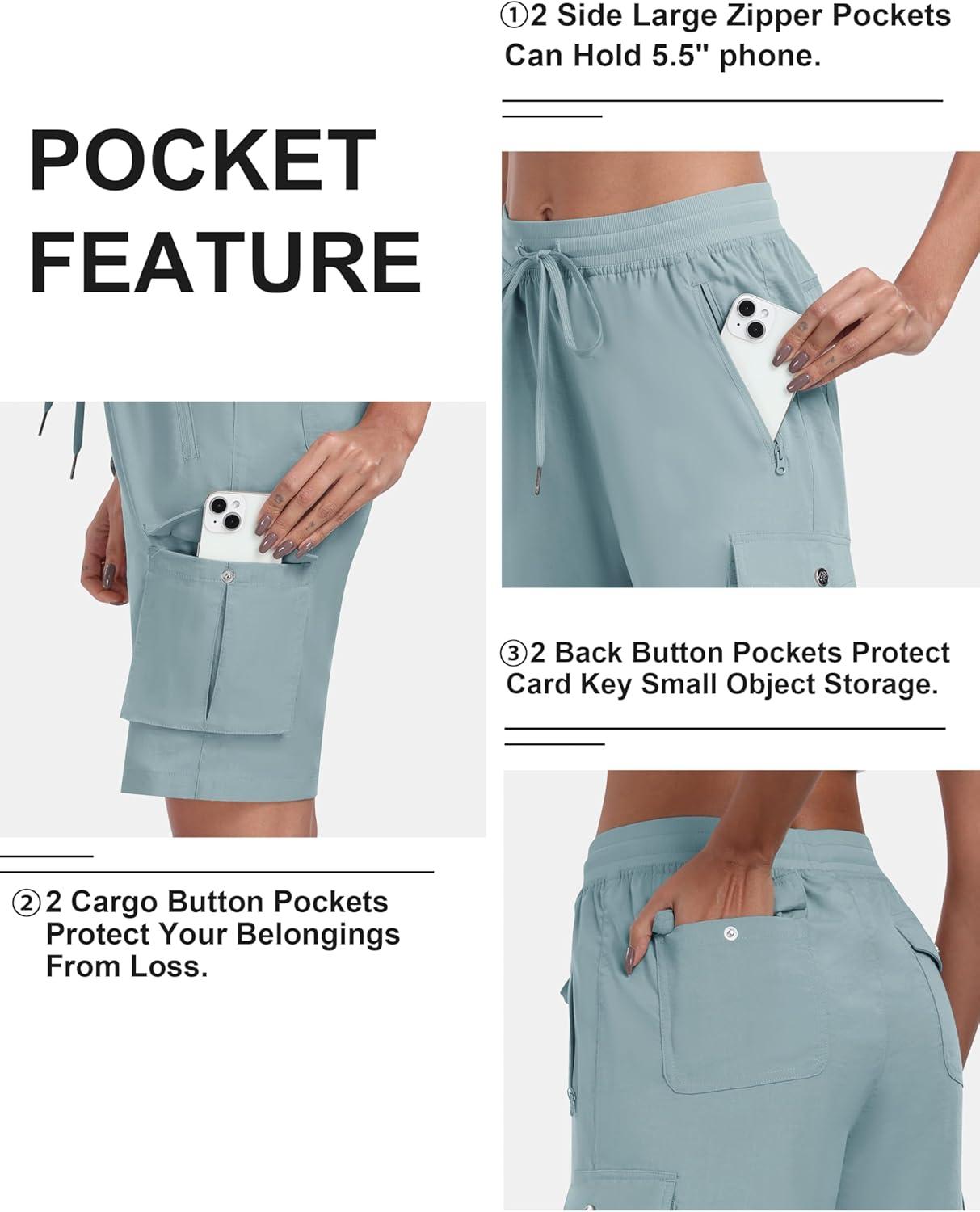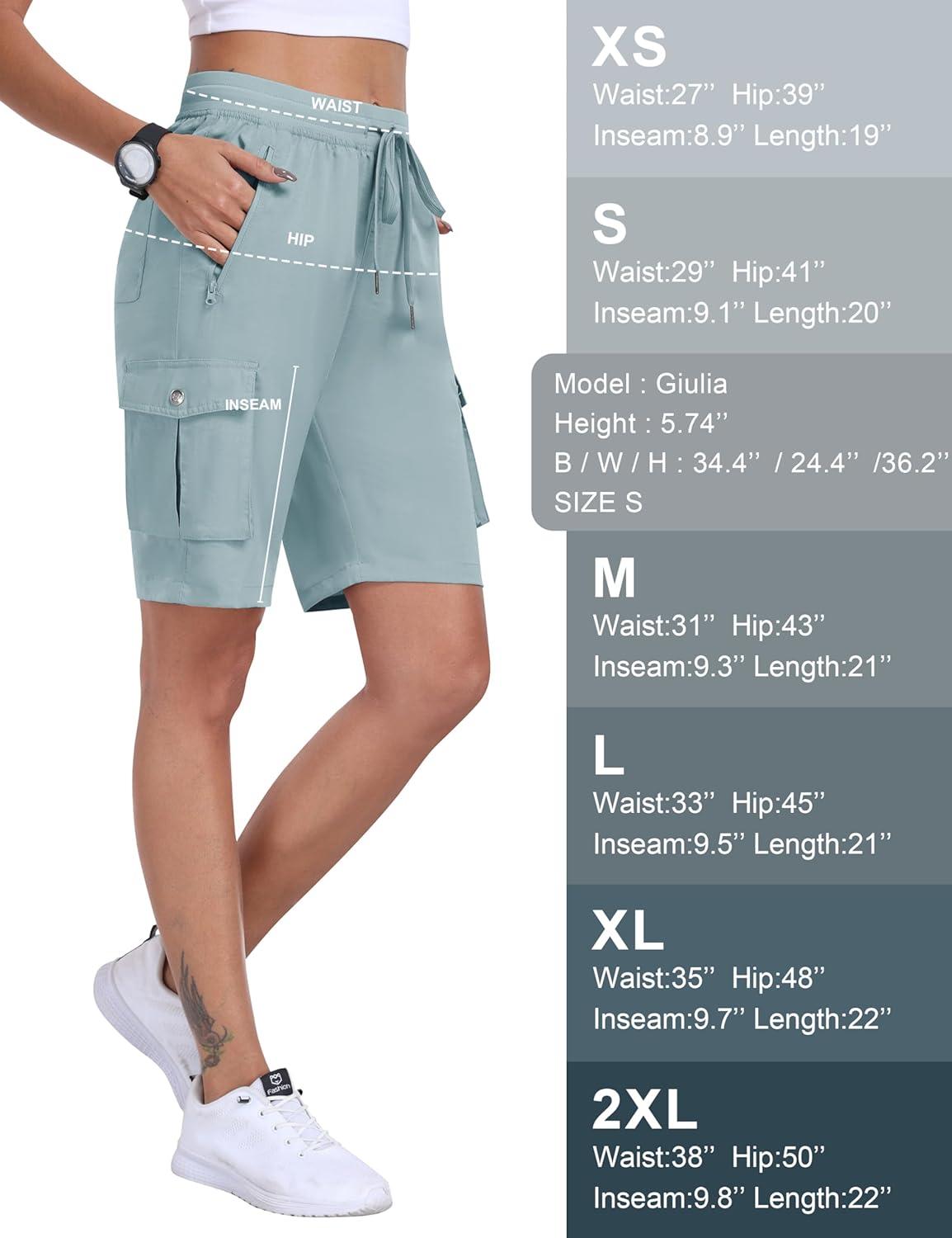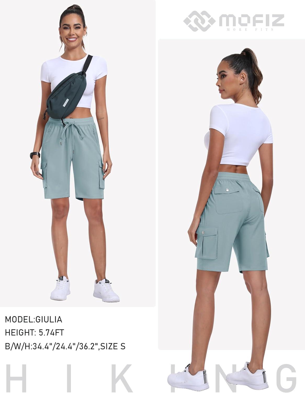 MoFiz Women’s 10″ Hiking Cargo Shorts Lightweight Quick Dry Outdoor Running Athletic Short Summer Travel Loose 6 Pockets(B05-dusty Blue)