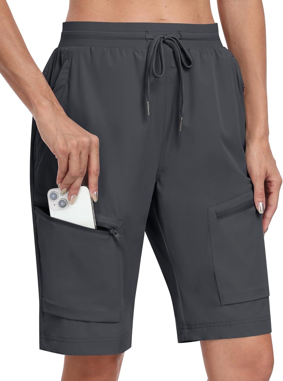 MoFiz Womens 10″ Long Shorts for Women Knee Length Quick Dry Women Hiking Cargo Athletic Travel Golf Shorts with Zip Pockets(Ae-dark Gray)