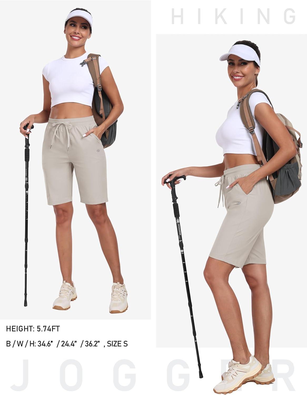 MoFiz Womens 10″ Long Shorts for Women Quick Dry Women Hiking Cargo Shorts Athletic Travel Golf Shorts