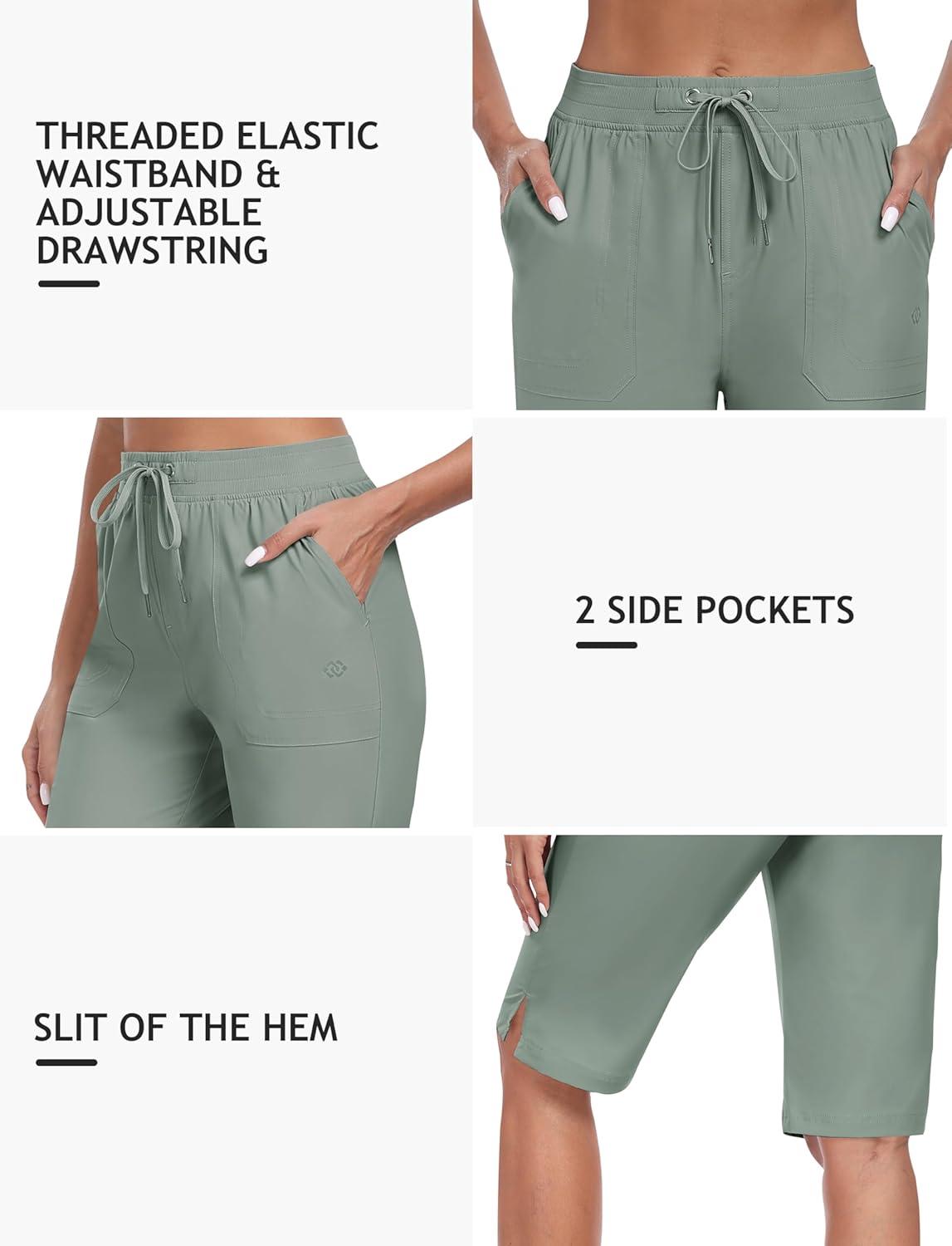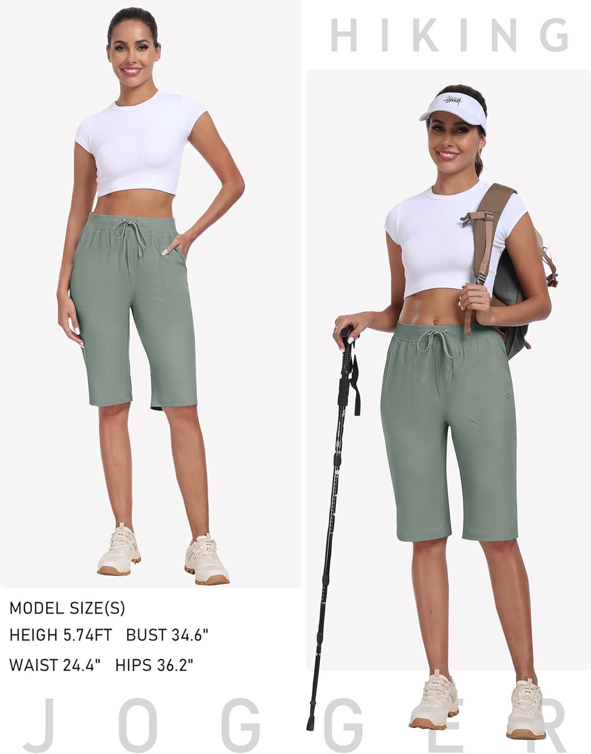 MoFiz Womens 13″ Knee Length Hiking Shorts Quick Dry Water Resistant Athletic Travel Golf Bermuda Shorts with 3 Pockets(A05-gray Green)