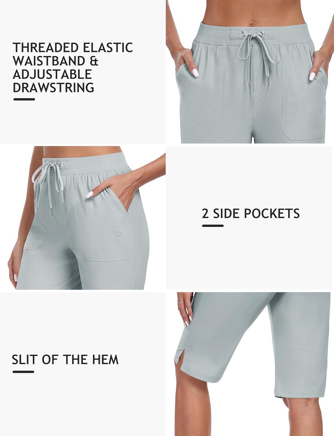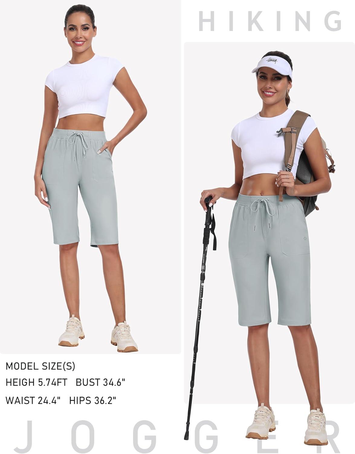 MoFiz Womens 13″ Knee Length Hiking Shorts Quick Dry Water Resistant Athletic Travel Golf Bermuda Shorts with 3 Pockets(A06-light Gray)
