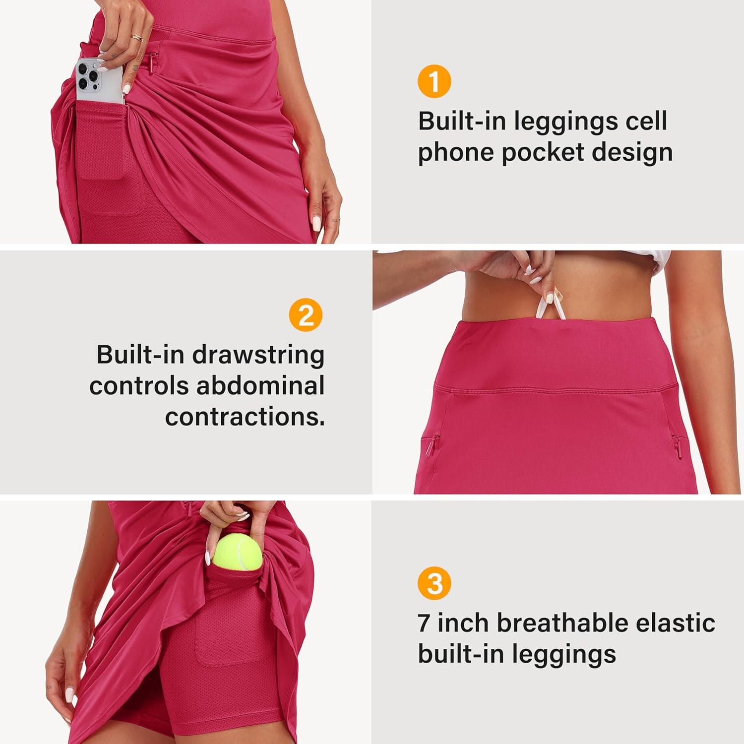 MoFiz Women’s 20″ Knee Length Golf Skorts Athletic Skirts Summer Casual Active Workout Sports Tennis Skirt with 4 Pockets(C04-rose Red)