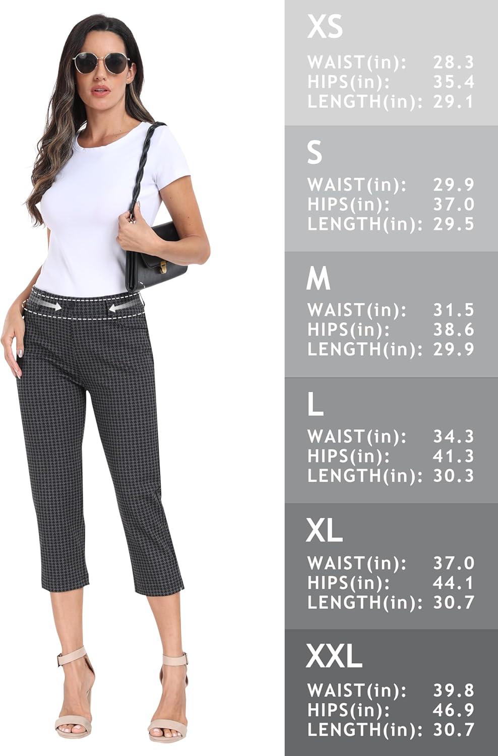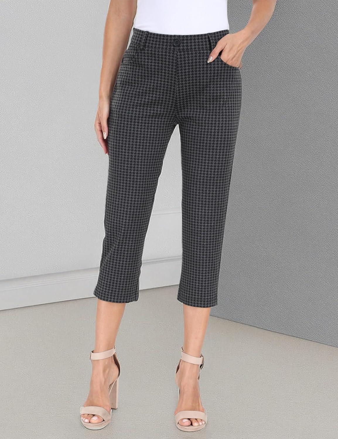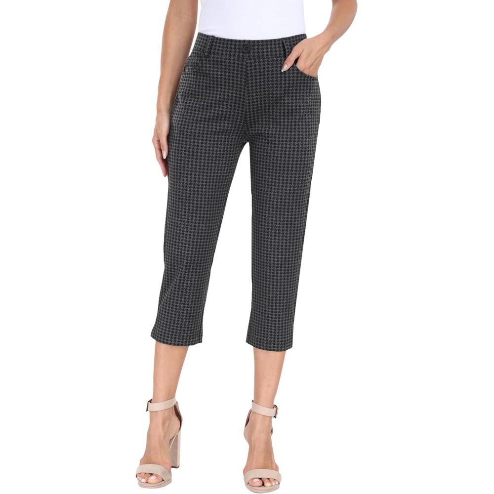 MoFiz Women’s Capri Pants Summer Pull-On Stretch Straight Leg Golf Yoga & Business Casual Dressy Cropped Pants with Pockets(Houndstooth)