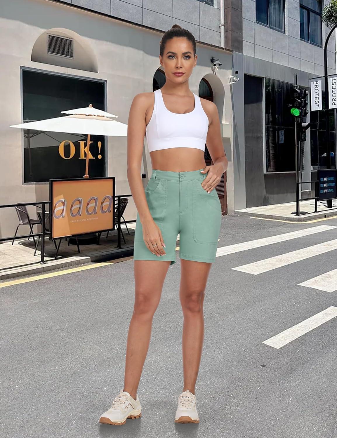 MoFiz Women’s Cotton Bermuda Cargo Shorts 5″ Casual Summer Elastic Waist Trouser Shorts with Pockets(Green)