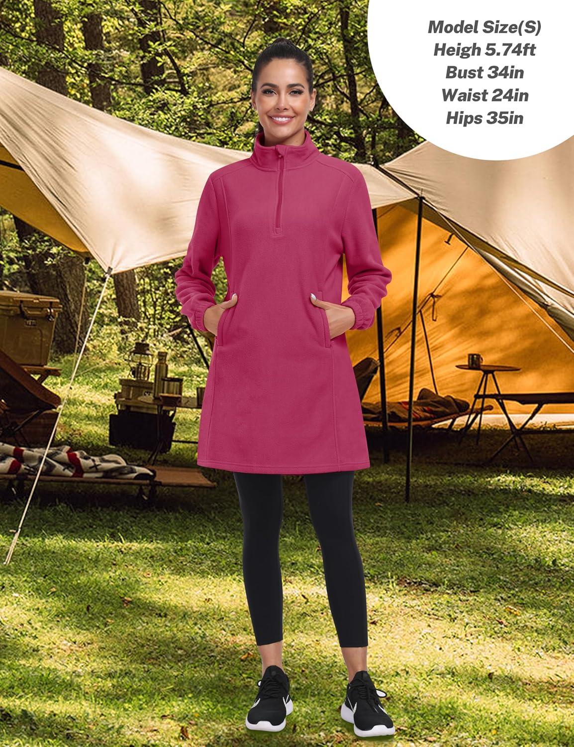 MoFiz Women’s Fleece Dress Sweatshirt Long Half Zip Pullover Polar Tunic Winter Lounge Dress Warm Cover Ups with Pocket(Rose Red)