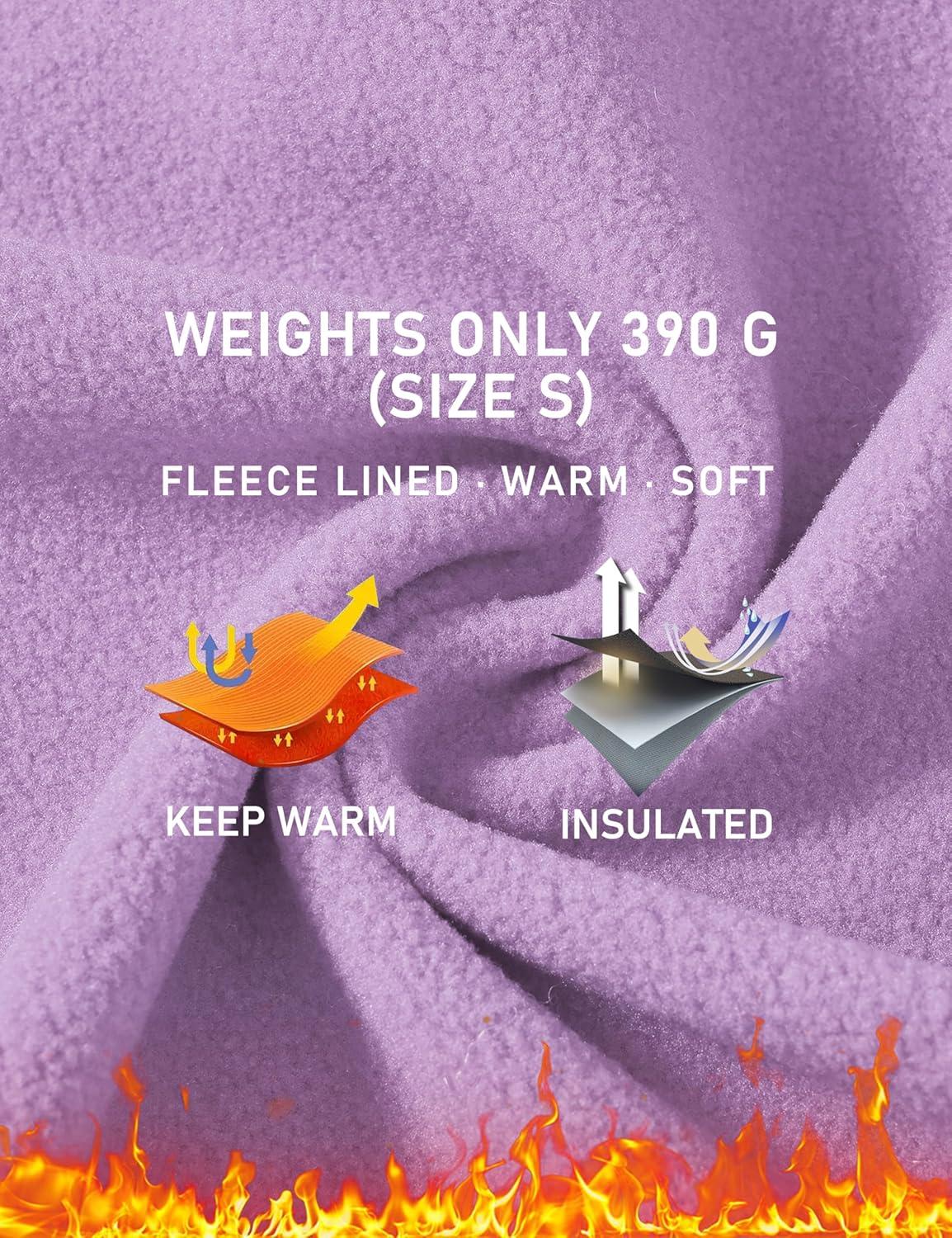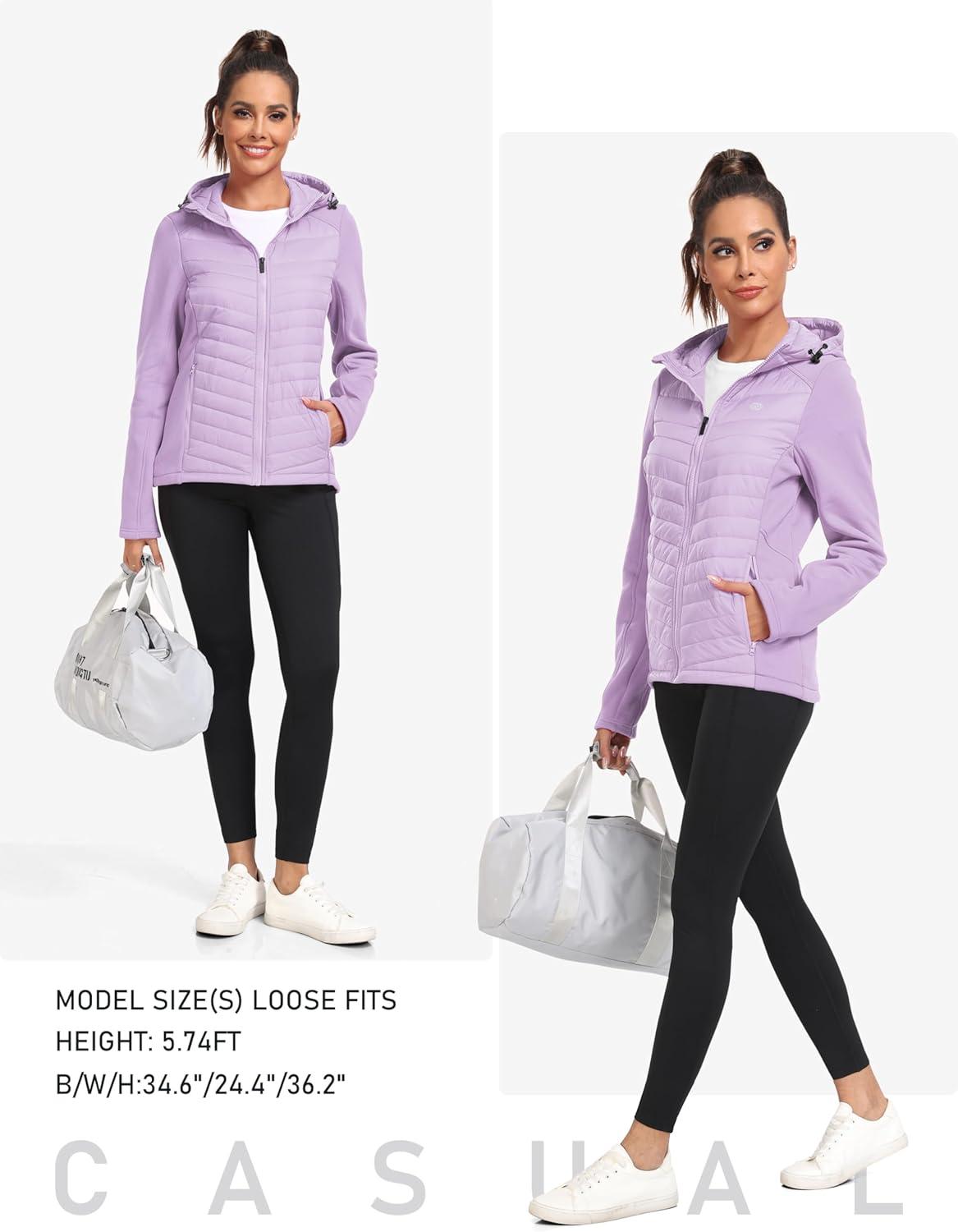 MoFiz Womens Fleece Lined Softshell Jacket Hooded Lightweight Insulated Puffer Hybrid Down Jacket Full Zip Running Coat(Light Purple)