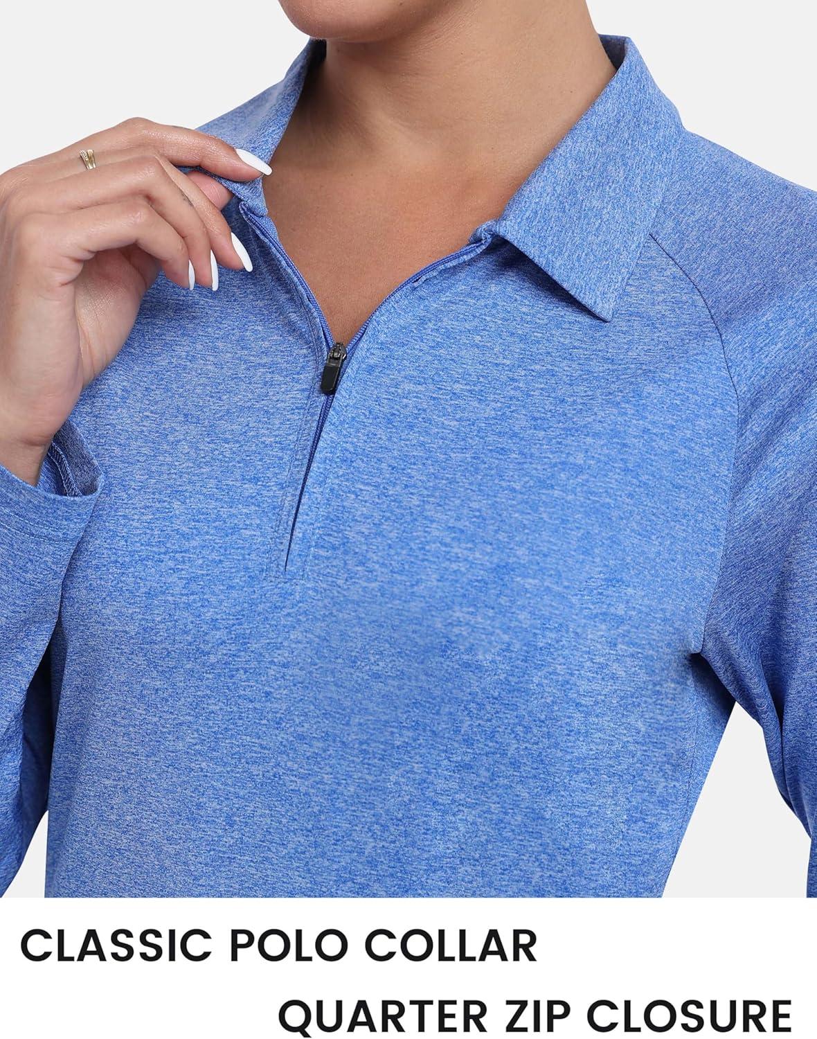 MoFiz Women’s Golf Polo Shirt Long Sleeve Collared 1/4 Zip Stretch Soft Athletic Tops for Tennis Hiking & Outdoor Sports(Sky Blue)