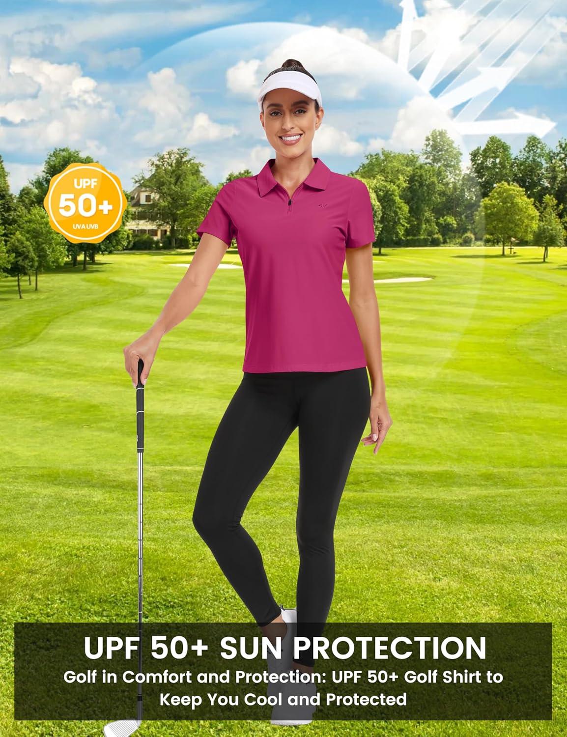 MoFiz Women’s Golf Polo Shirt Short Sleeve UPF 50+ Collared 1/4 Zip Tennis Tops Quick-Dry Lightweight Cooling Athletic Shirt(Rose)