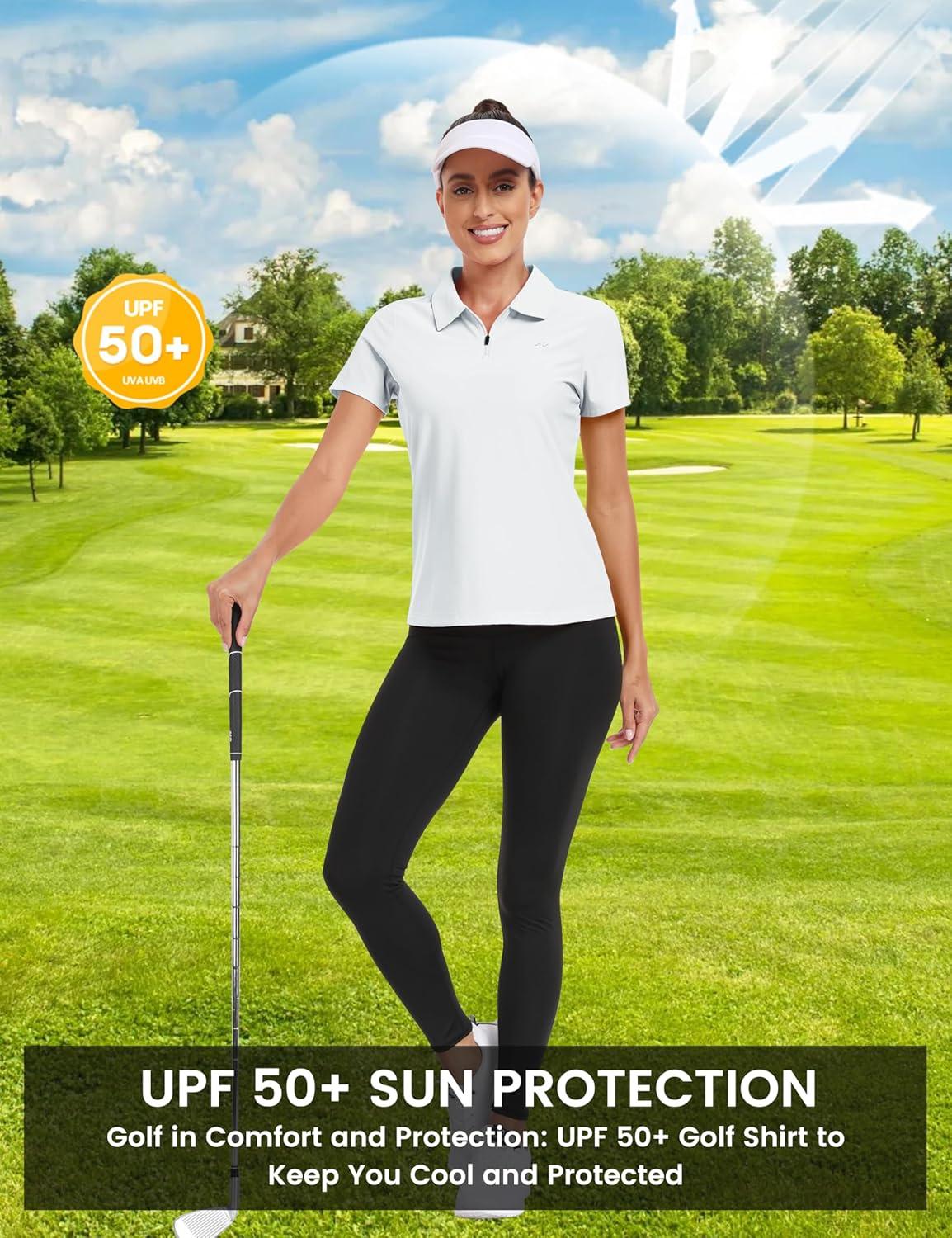 MoFiz Women’s Golf Polo Shirt Short Sleeve UPF 50+ Collared 1/4 Zip Tennis Tops Quick-Dry Lightweight Cooling Athletic Shirt(White)