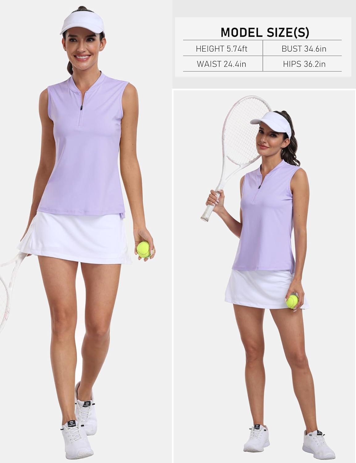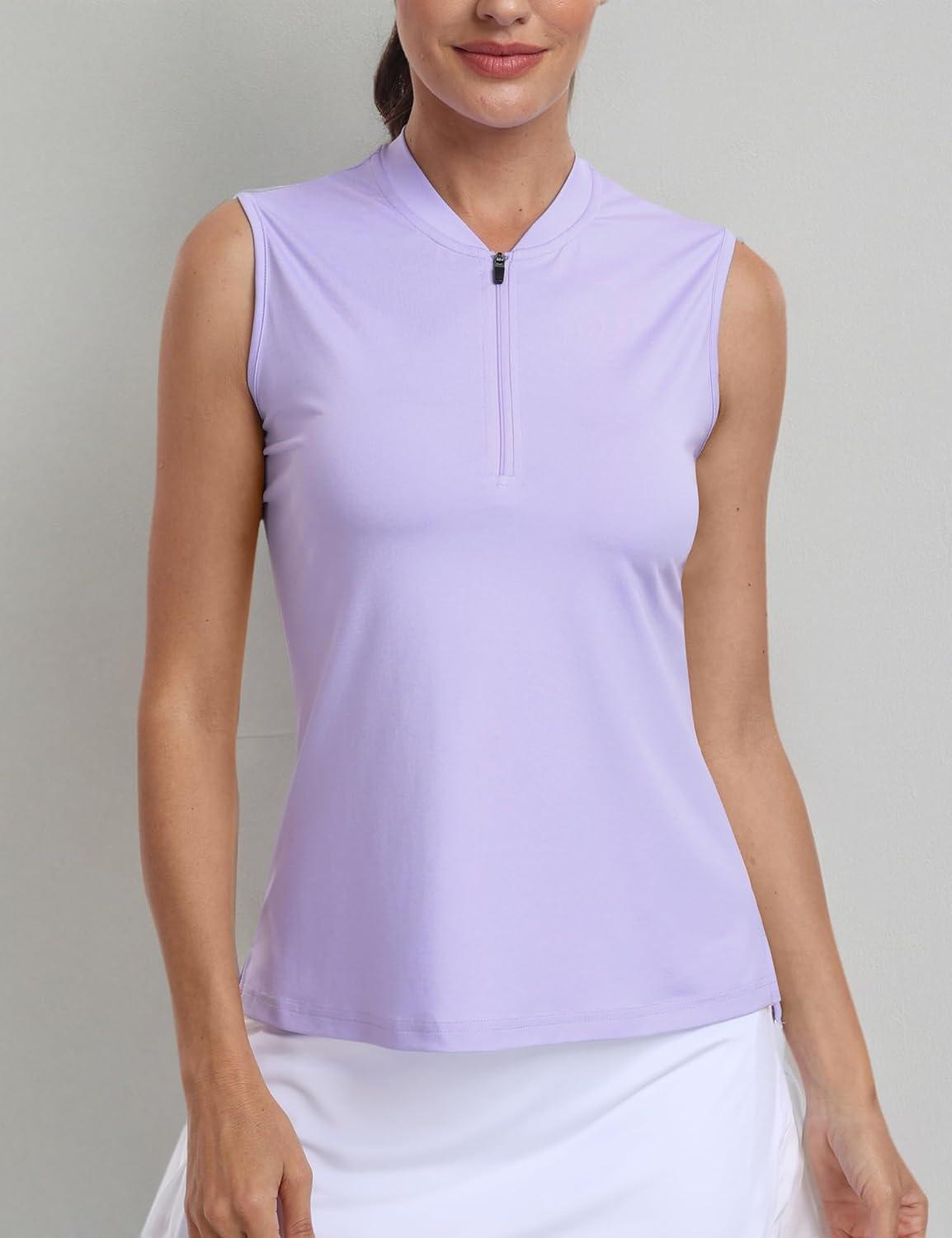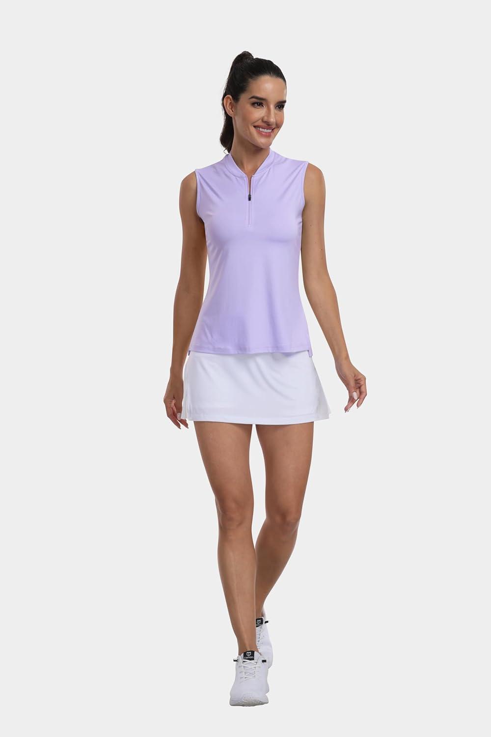 MoFiz Women’s Golf Polo Shirt Sleeveless 1/4 Zip Collarless Tennis Tank Tops Quick-Dry Lightweight Athletic Sport T-Shirt(Light Purple)