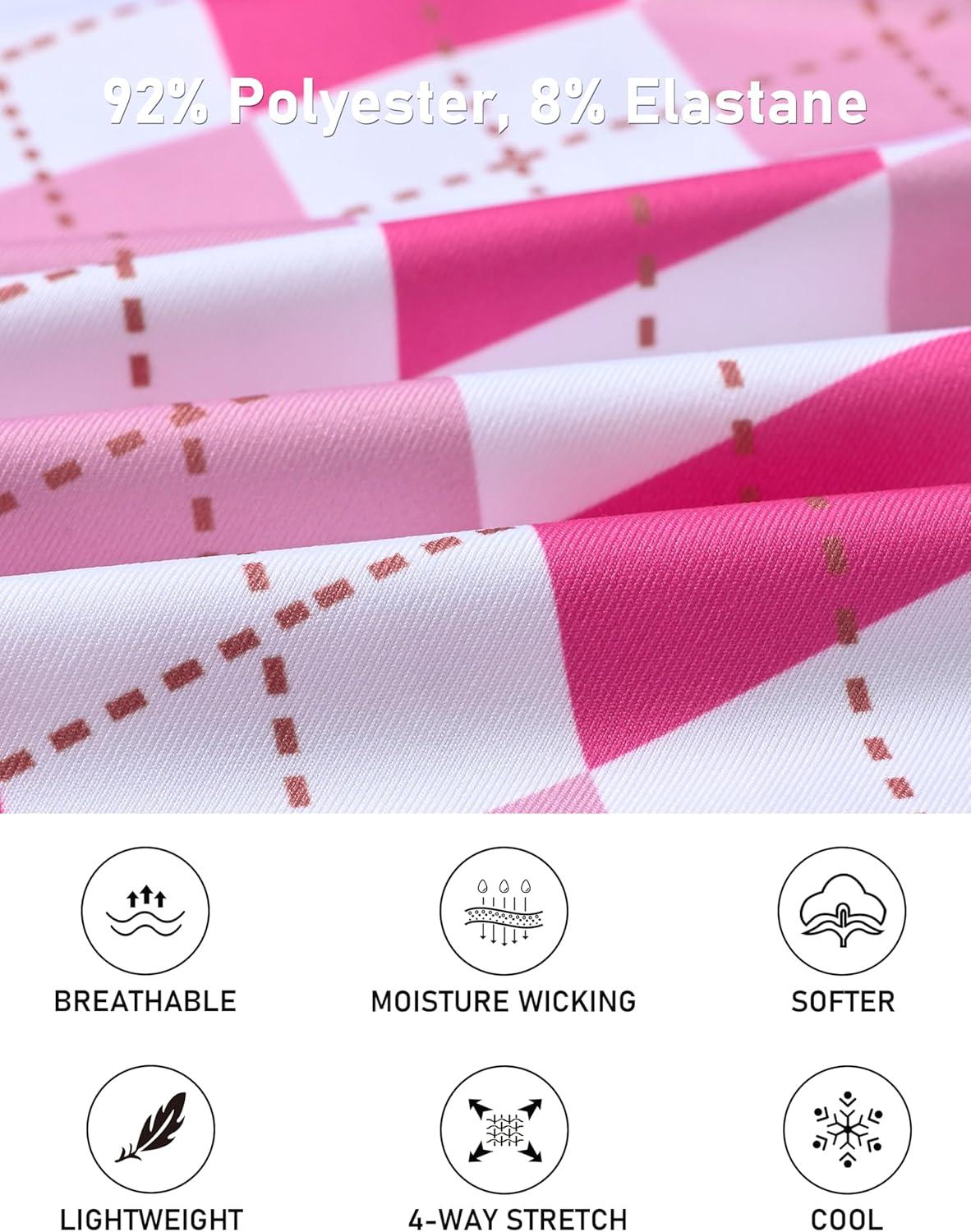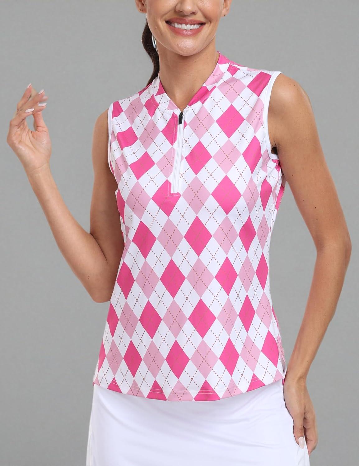 MoFiz Women’s Golf Polo Shirt Sleeveless 1/4 Zip Collarless Tennis Tank Tops Quick-Dry Lightweight Athletic Sport T-Shirt(Rose Pink Argyle)