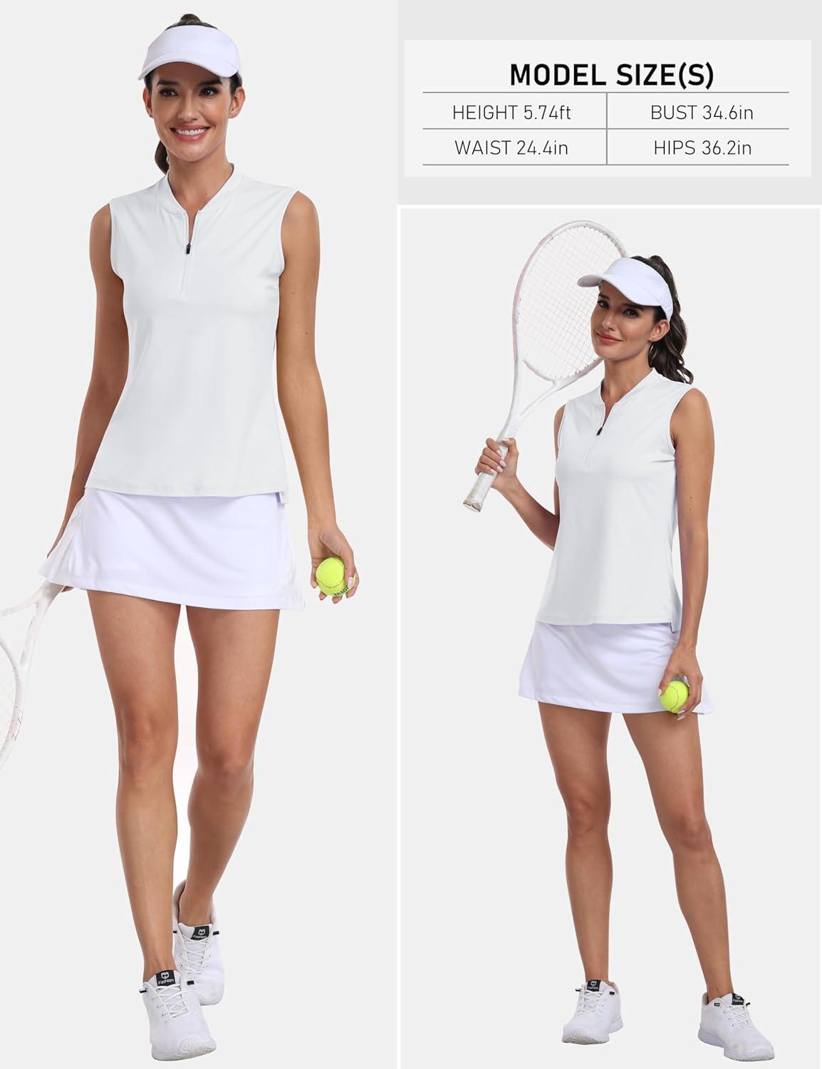 MoFiz Women’s Golf Polo Shirt Sleeveless 1/4 Zip Collarless Tennis Tank Tops Quick-Dry Lightweight Athletic Sport T-Shirt(White)