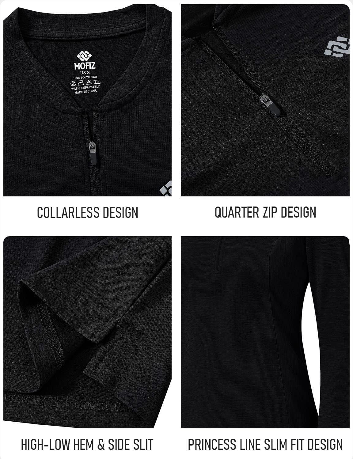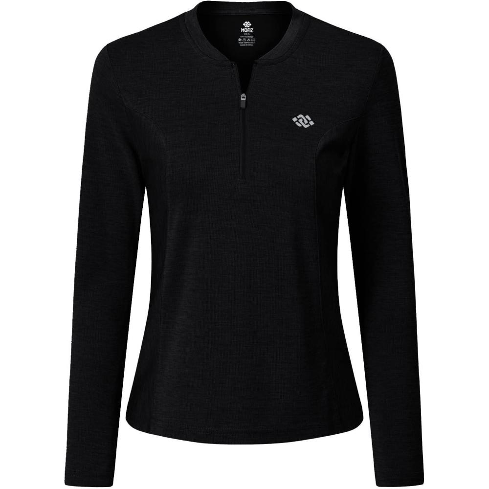 MoFiz Women’s Golf Polo Shirt UPF 50+ Sun Protection 1/4 Zip Long Sleeve Pullover Tops Quick Dry Athletic Sport T-Shirt(Black)