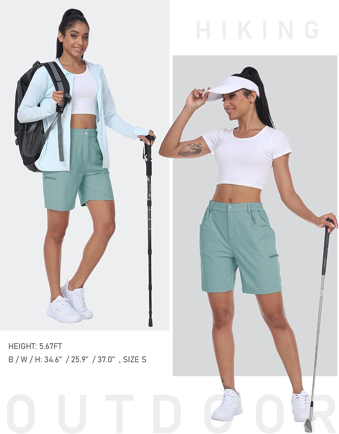 MoFiz Womens Golf Shorts 7″ Quick Dry Hiking Shorts Lightweight Bermuda Short for Women with Pockets (Water Resistant)(Army Green)