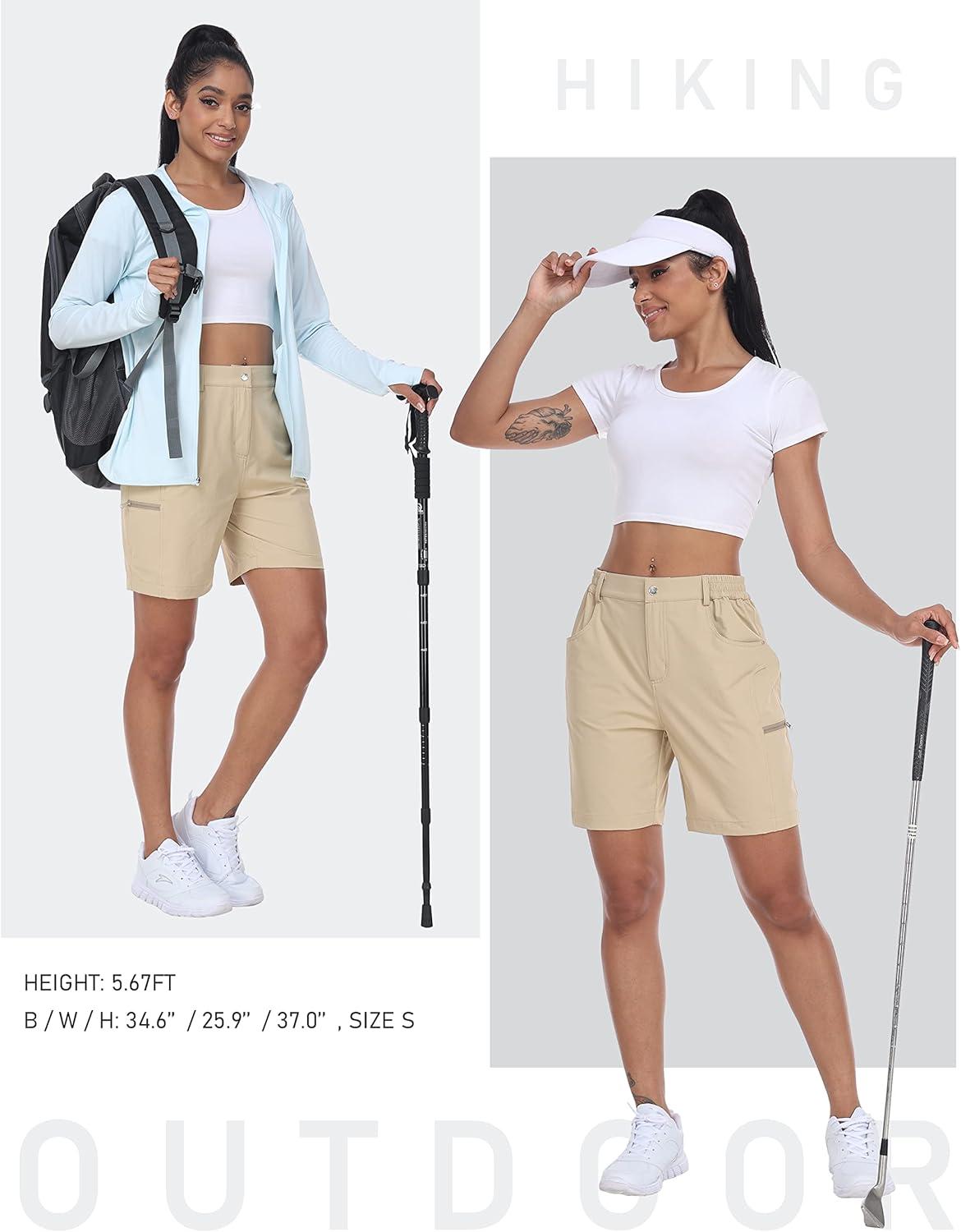MoFiz Womens Golf Shorts 7″ Quick Dry Hiking Shorts Lightweight Bermuda Short for Women with Pockets (Water Resistant)(Khaki)