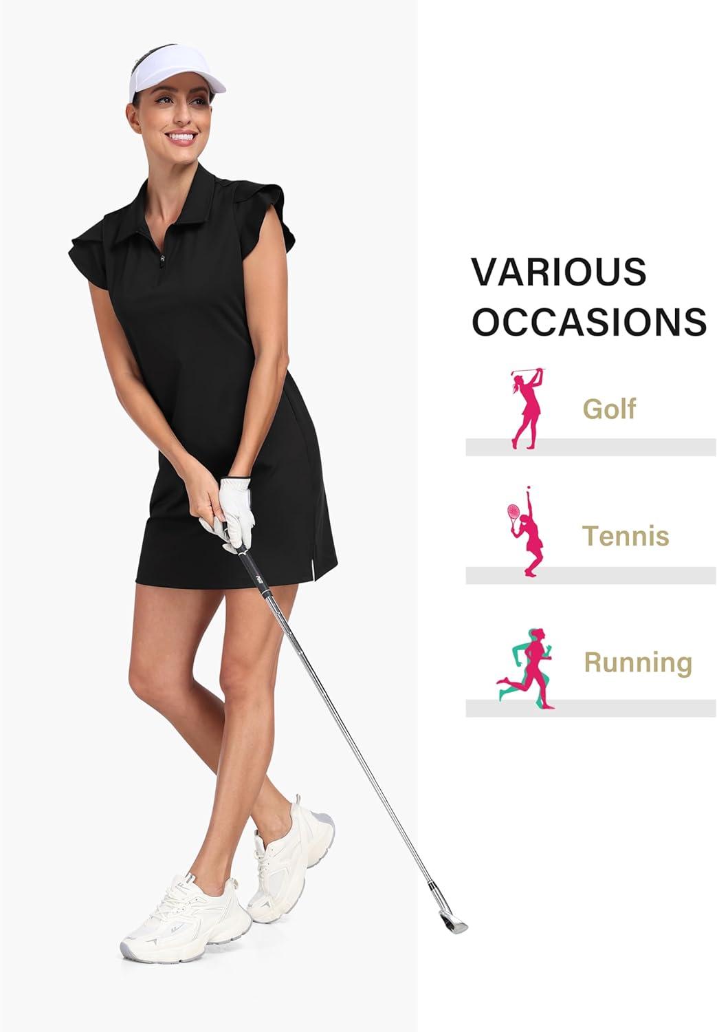 MoFiz Women’s Golf Tennis Dress Sports Polo Dress Short Sleeve Quick Dry Casual Workwear Button(2025-black)