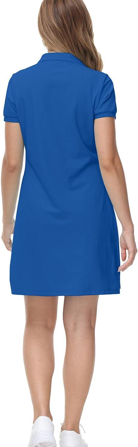 MoFiz Women’s Golf Tennis Dress Sports Polo Dress Short Sleeve Quick Dry Casual Workwear Button(Blue)