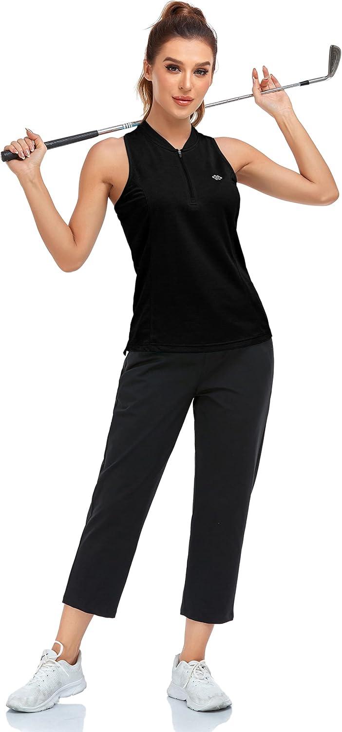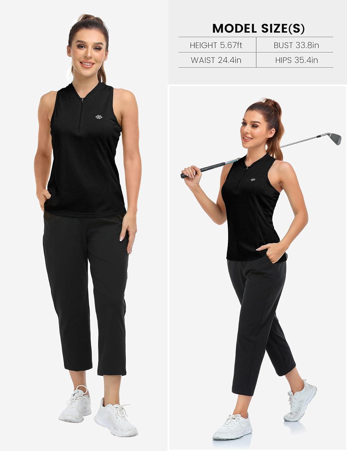 MoFiz Women’s Golf Tennis Polo Shirt Sleeveless 1/4 Zip Collarless Racerback Pickleball Tank Tops Quick Dry Athletic T-Shirt(Black)