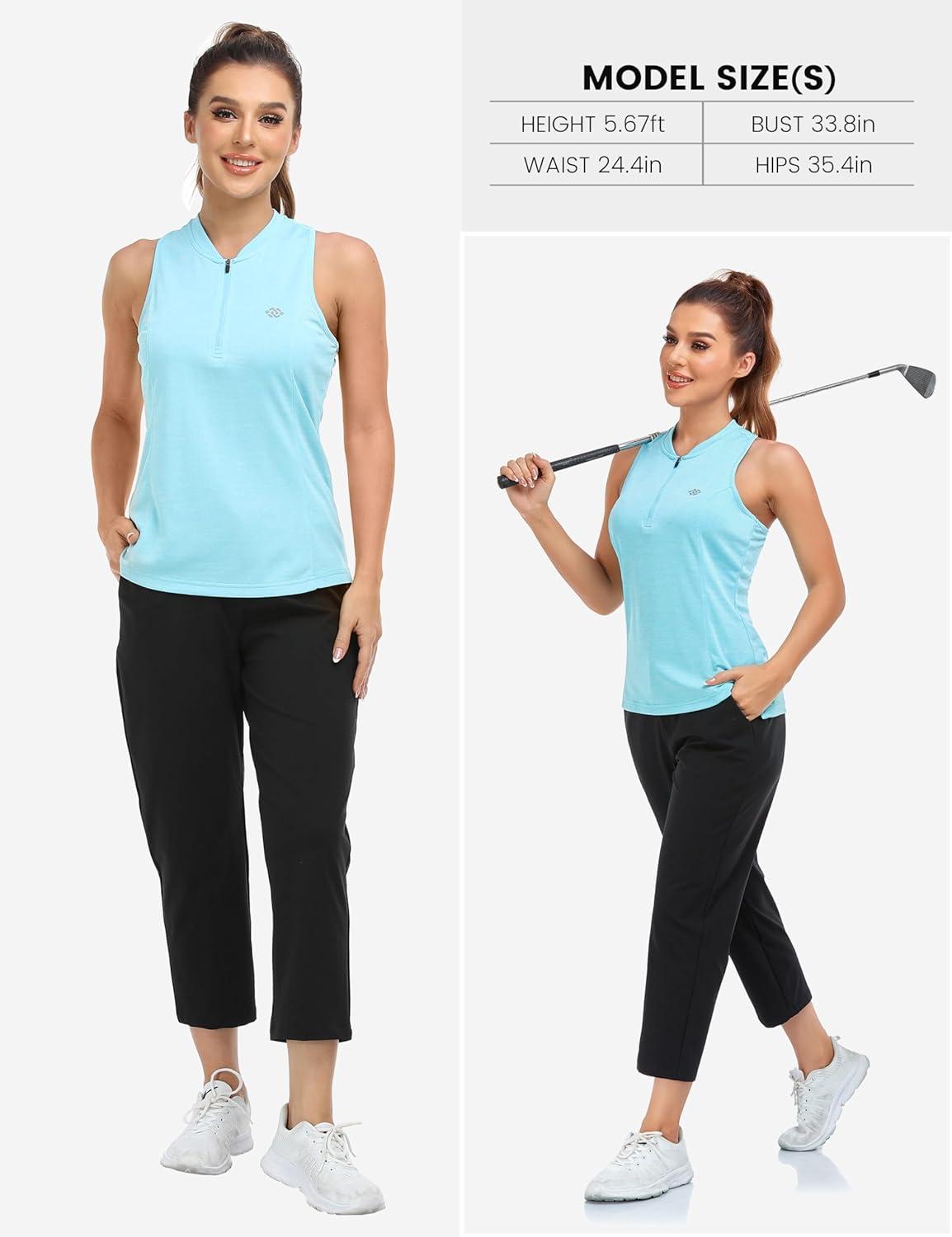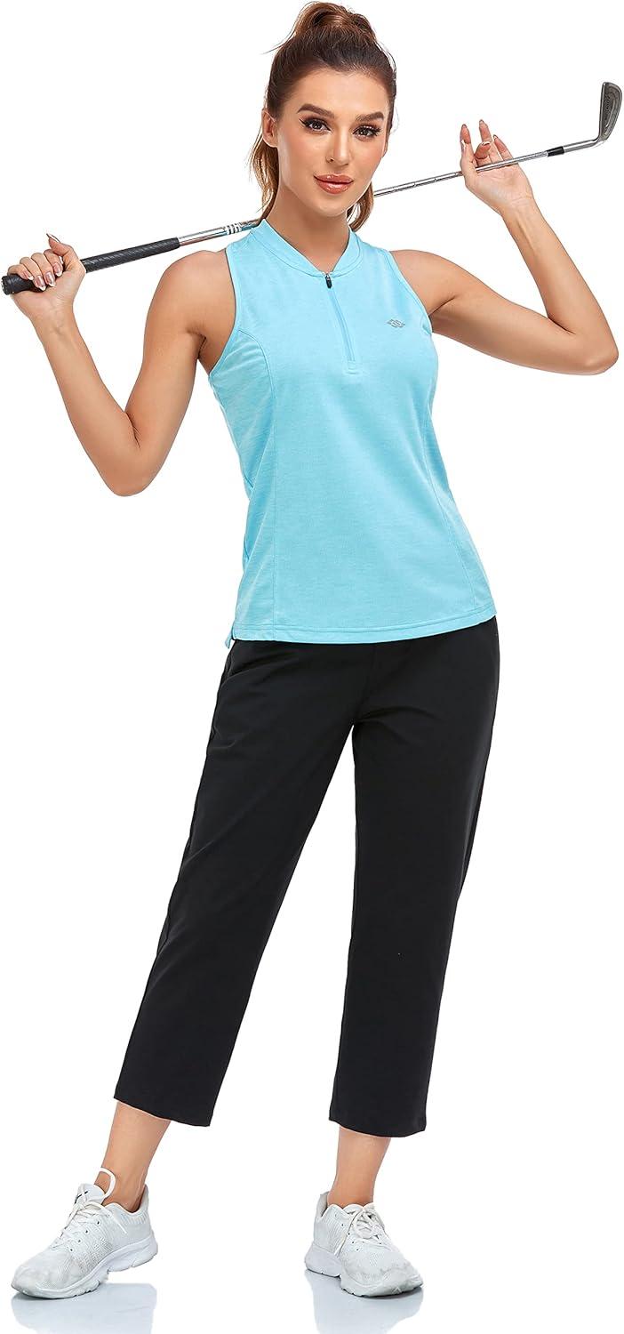 MoFiz Women’s Golf Tennis Polo Shirt Sleeveless 1/4 Zip Collarless Racerback Pickleball Tank Tops Quick Dry Athletic T-Shirt(Sky Blue)