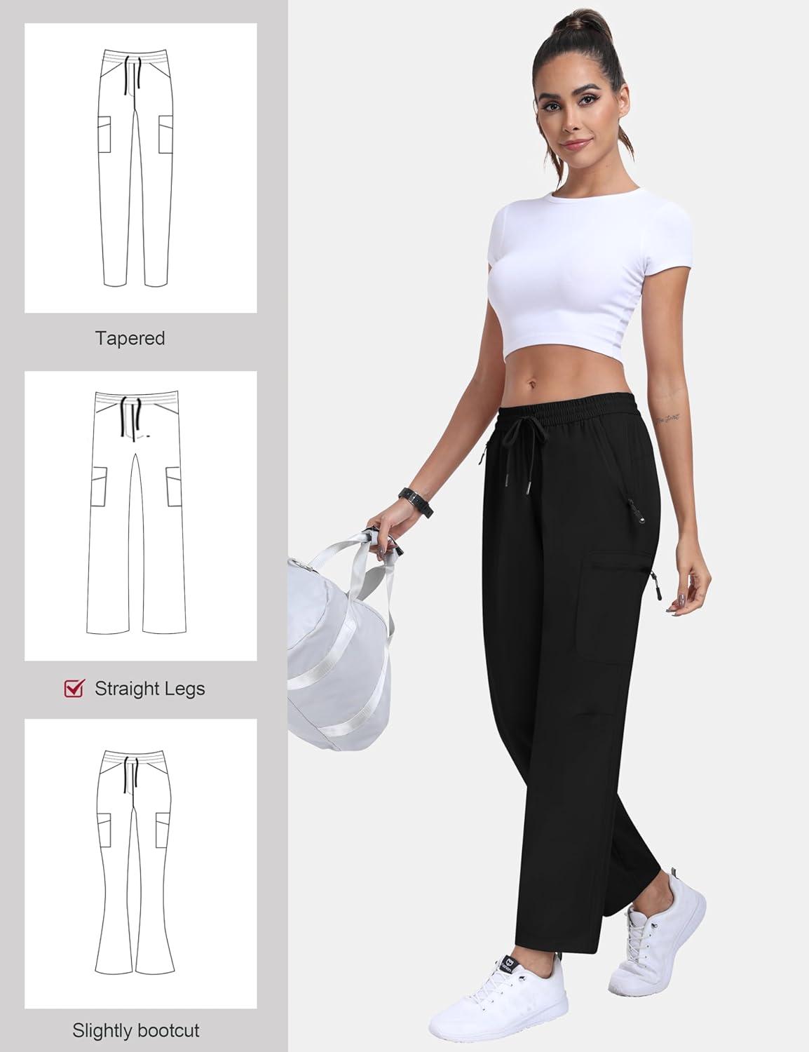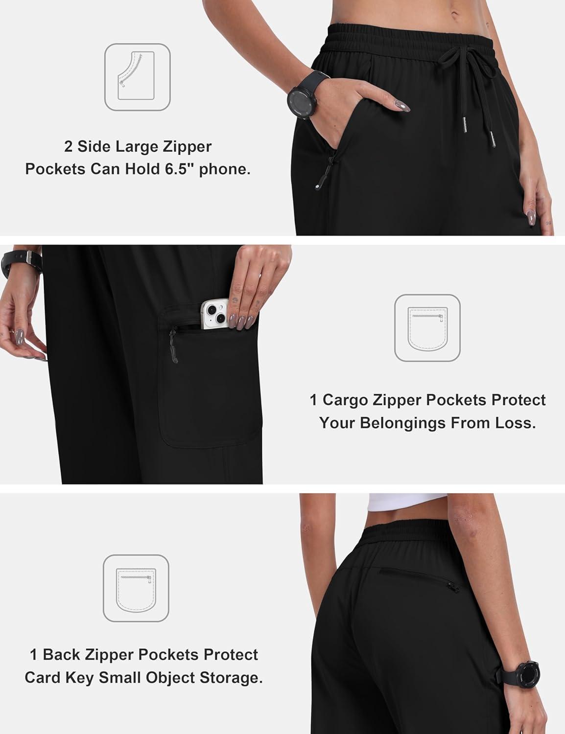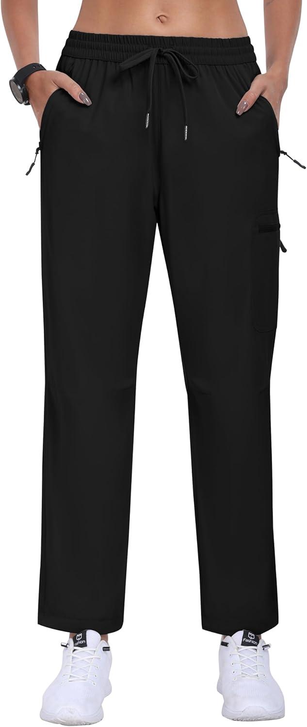 MoFiz Women’s Hiking Cargo Pants Lightweight Joggers Elastic Waist Athletic Outdoor Sweatpants Casual Travel Pant with Pocket Black XL