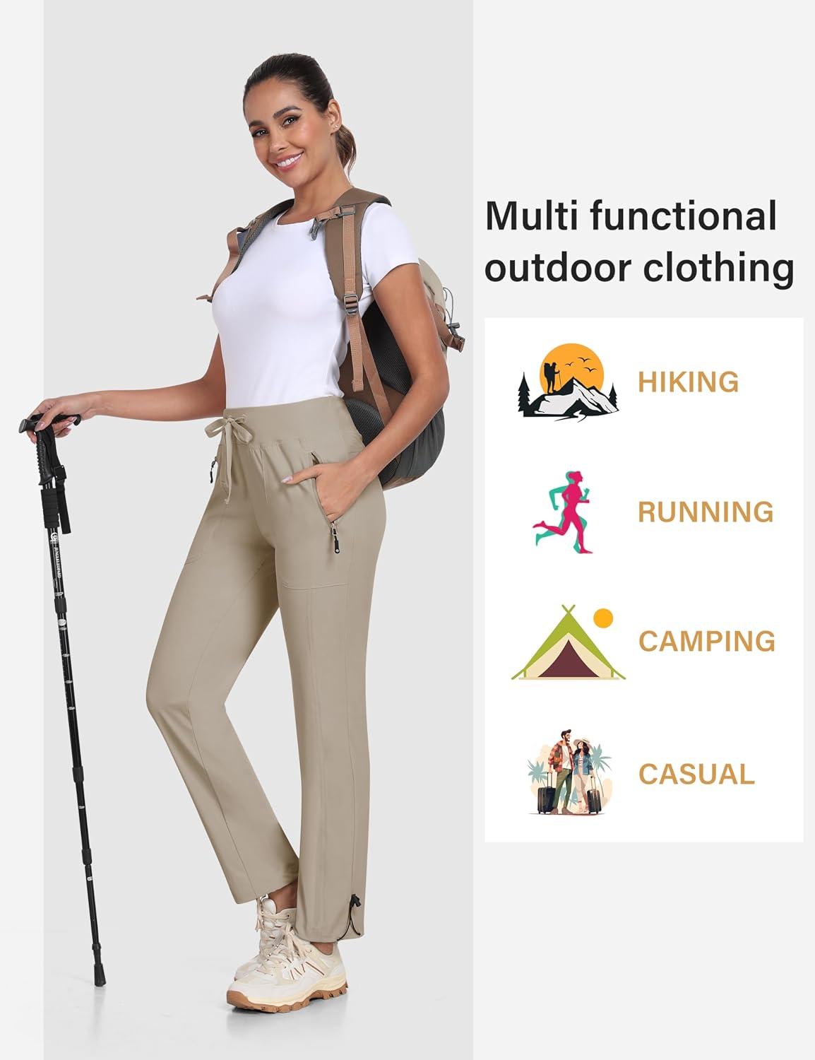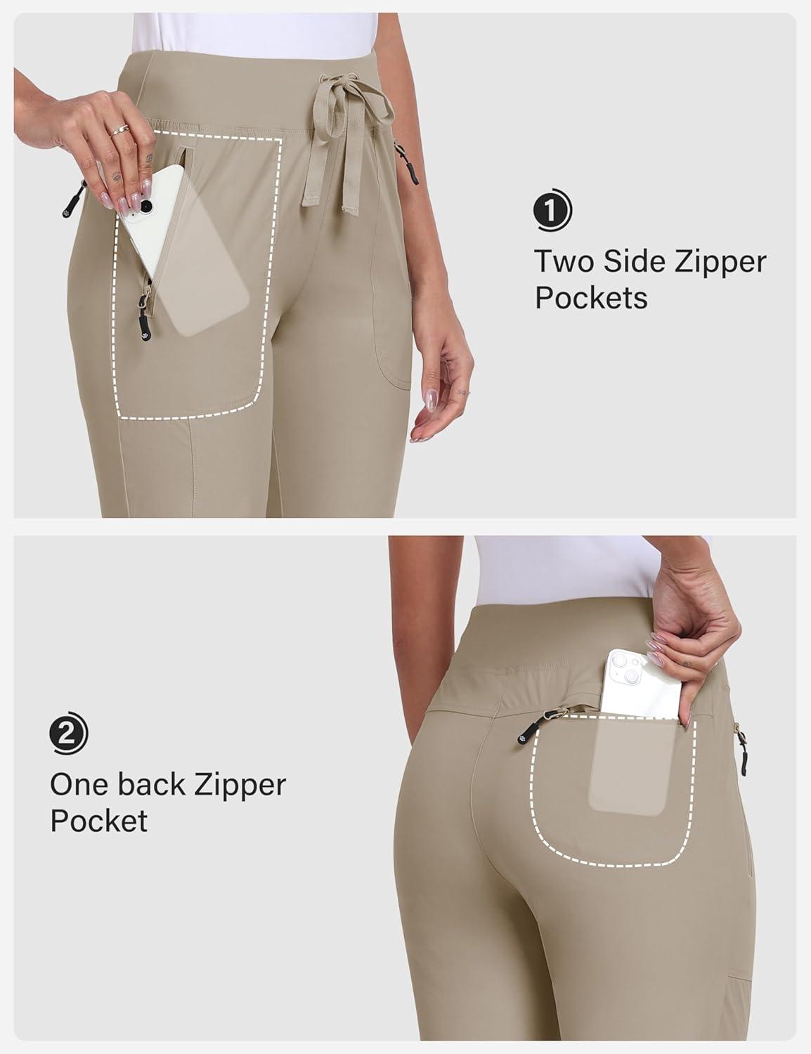MoFiz Women’s Hiking Pants Lightweight Outdoor Quick Dry Travel Joggers Water Resistant Athletic Pants Zipper Pockets(A05-light Khaki)