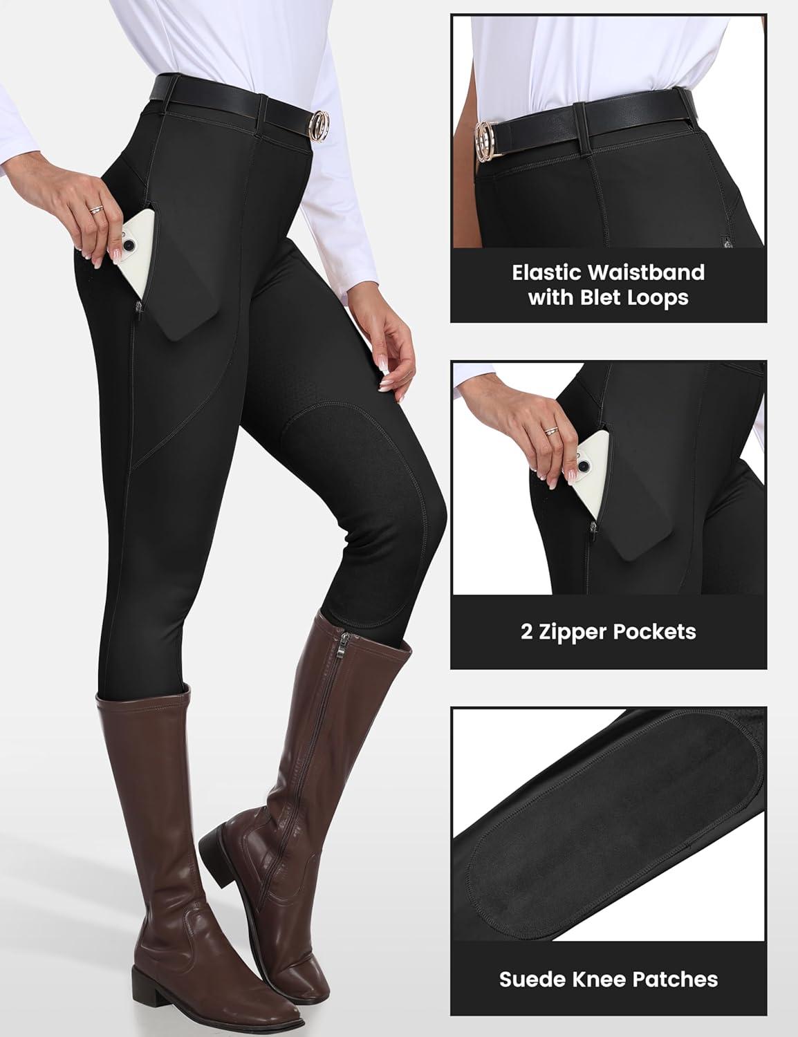MoFiz Women’s Horse Riding Pants Full Seat Silicon Knee-Patch Equestrian Breeches Horseback Schooling Tights Zipper Pockets(Dark Grey)