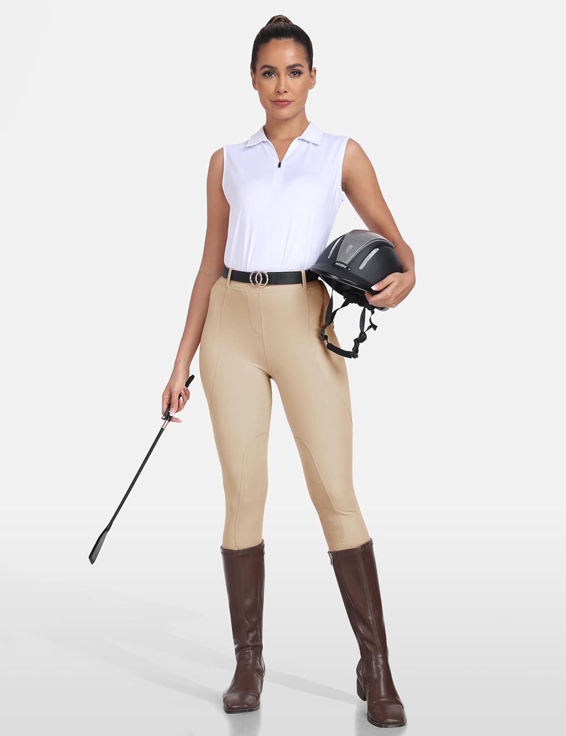 MoFiz Women’s Horse Riding Pants Full Seat Silicon Knee-Patch Equestrian Breeches Horseback Schooling Tights Zipper Pockets(Light Khaki)