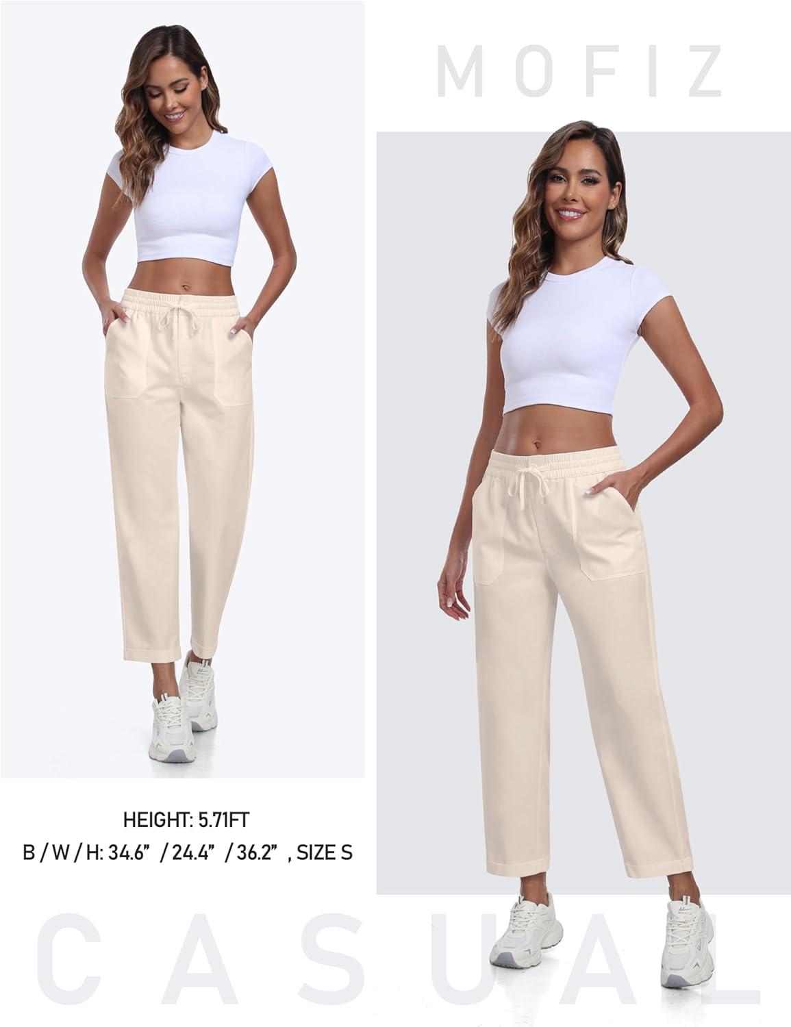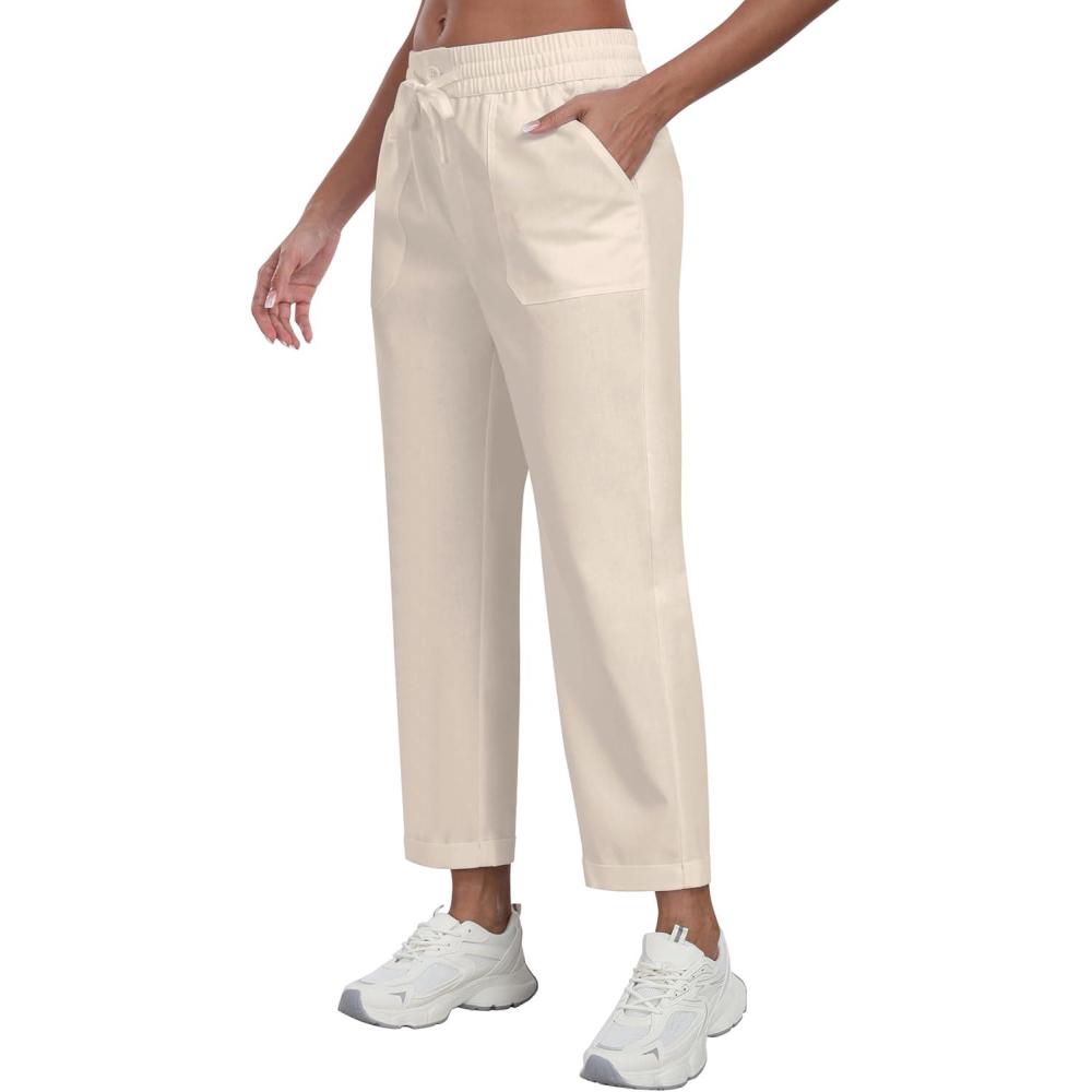 MoFiz Women’s Linen Pants Casual Lightweight Lounge Pants Cotton Linen Travel Beach Summer Pants with Pockets Khaki M