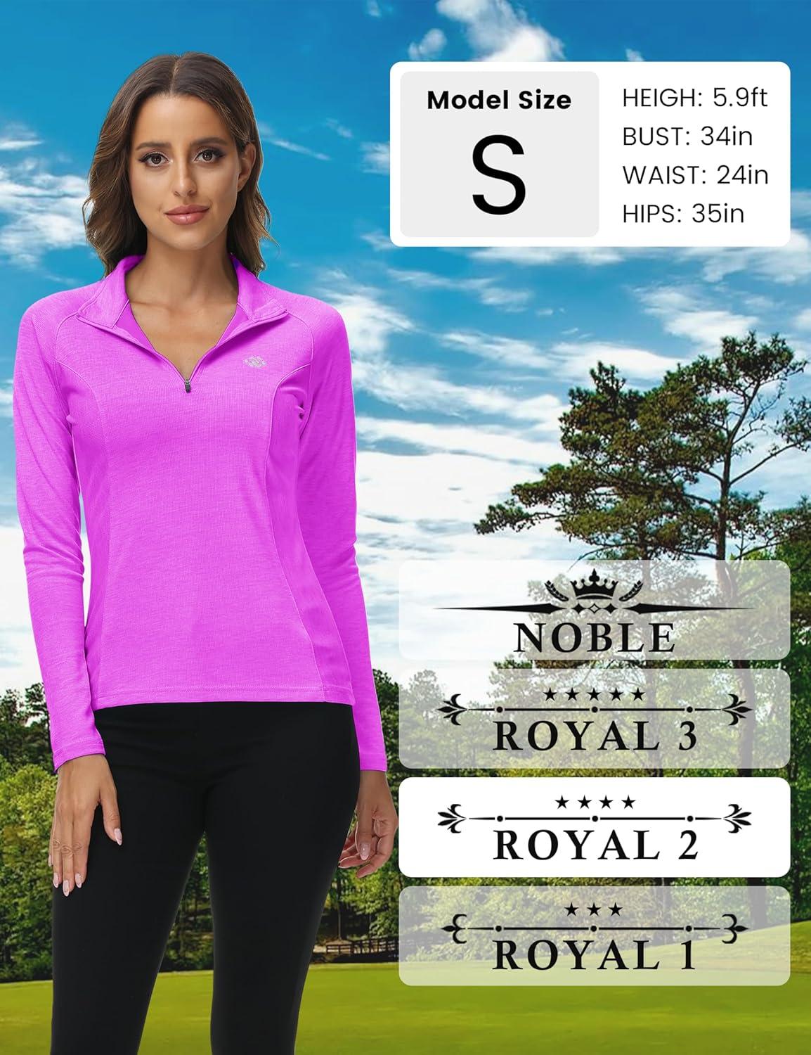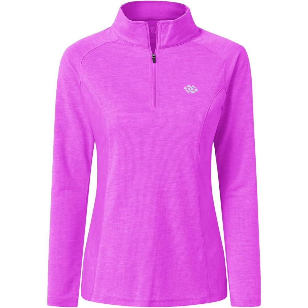 MoFiz Women’s Long Sleeve Golf Polo Shirt 1/4 Zip UPF 50+ Sun Protection Quick Dry Lightweight Athletic Hiking Running Tops(01-purple)