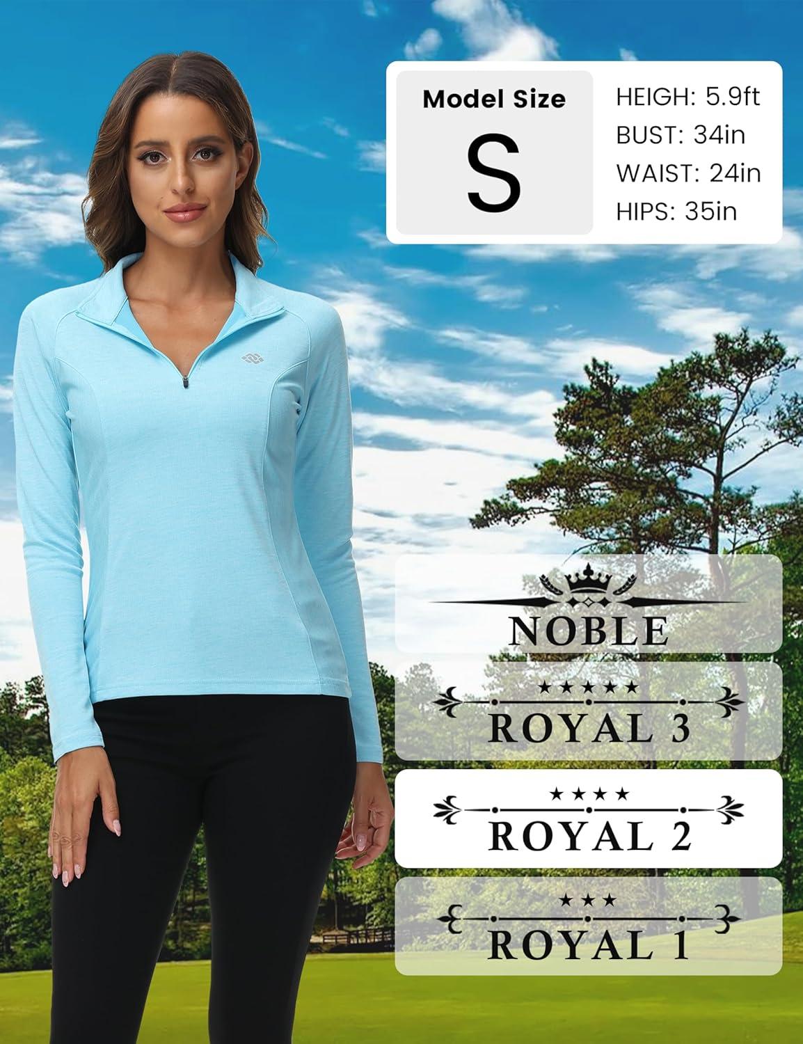 MoFiz Women’s Long Sleeve Golf Polo Shirt 1/4 Zip UPF 50+ Sun Protection Quick Dry Lightweight Athletic Hiking Running Tops(01-sky Blue)