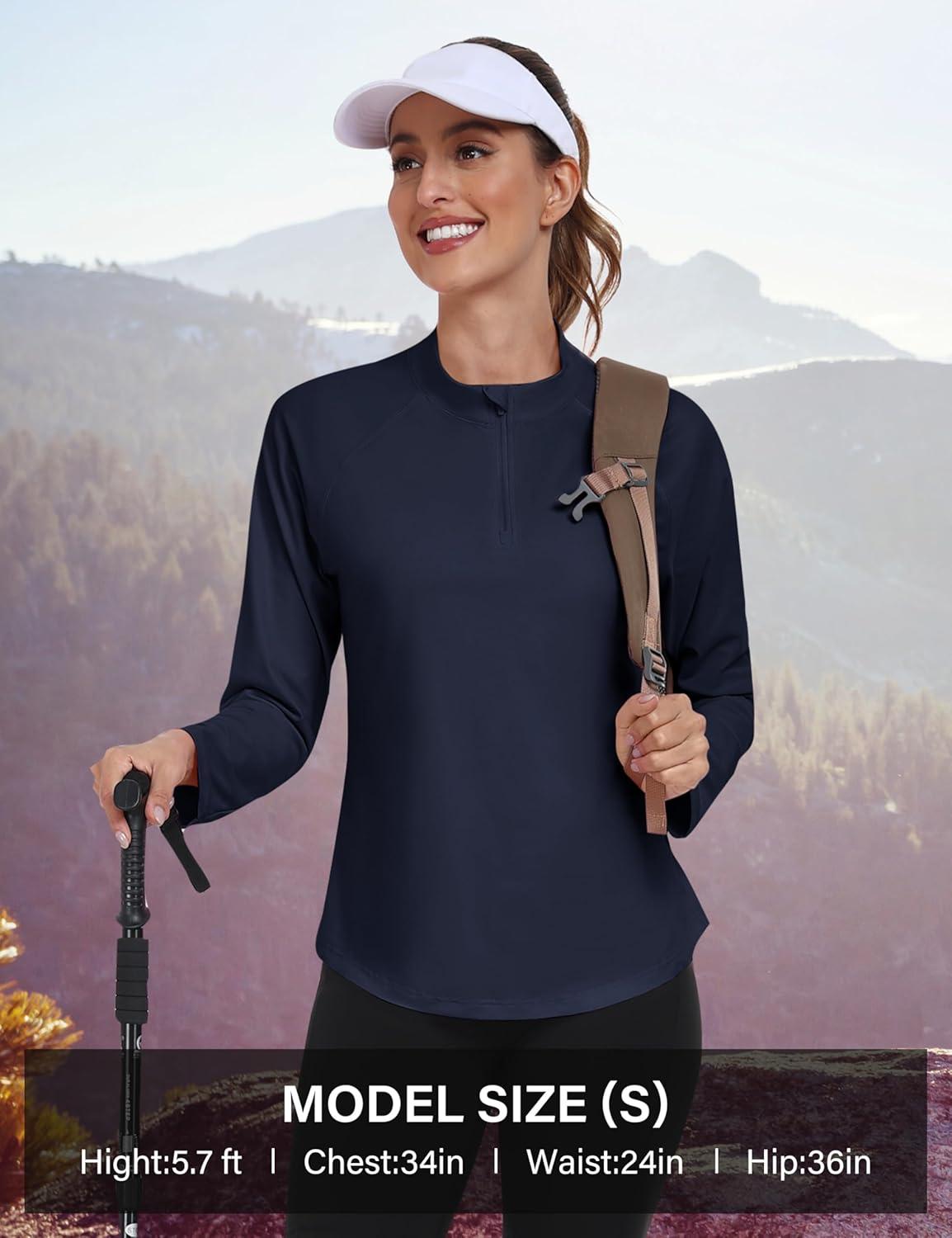MoFiz Women’s Long Sleeve Golf Polo Shirt 1/4 Zip UPF 50+ Sun Protection Quick Dry Lightweight Athletic Hiking Running Tops(Navy Blue)